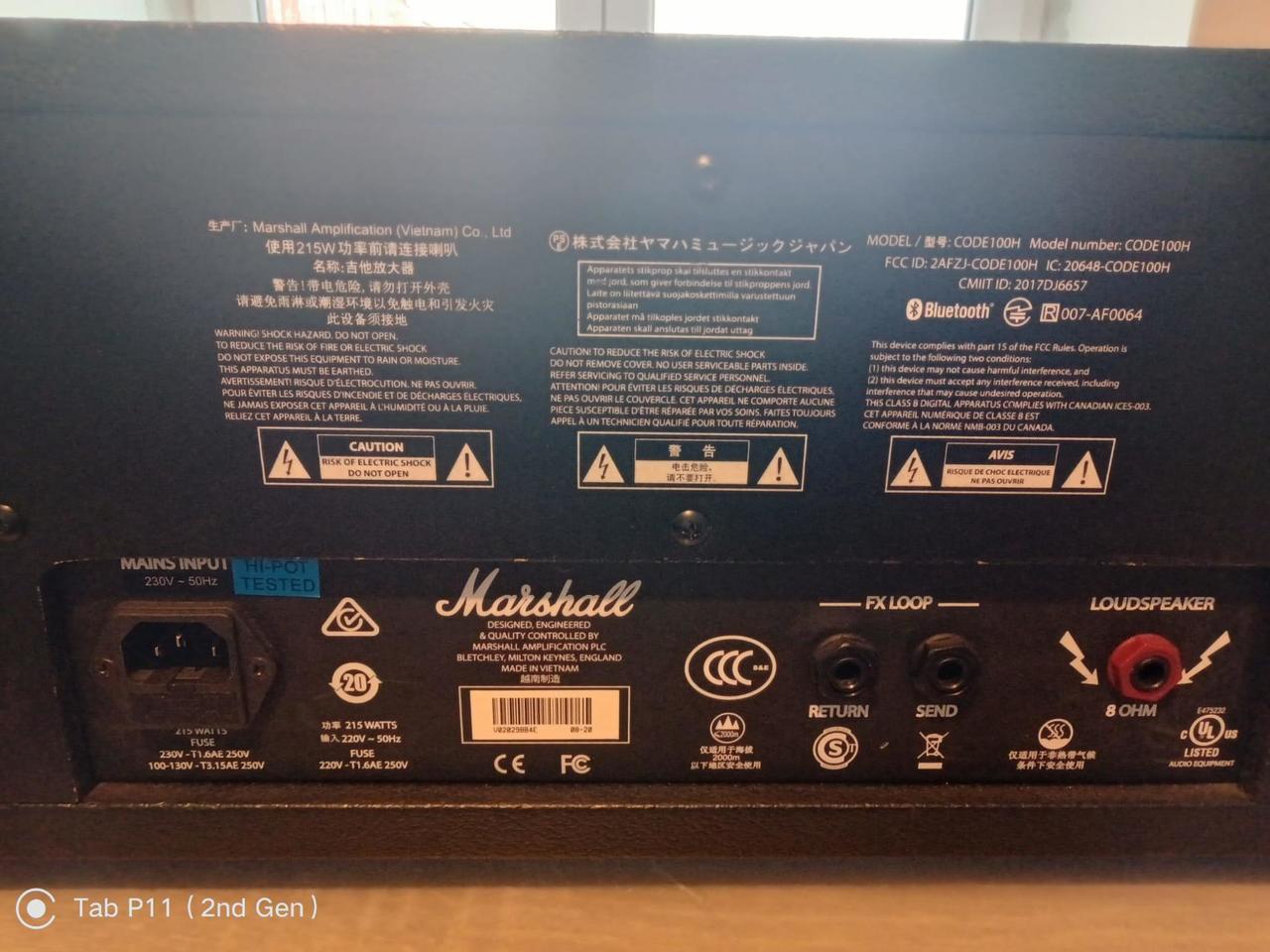 Kytarový modelingový zesilovač s výkonem 100W. Zesilovač Code 100 je ideálním pomocníkem pro všechny kytaristy, kteří chtějí mít po ruce nekonečné zvukové možnosti na koncertech nebo ve studiu. Code 100 H je vybaven technologií MST, která vznikla ze spolupráce značky Marshall a softwareovým zvukových pionýrů Softube. Výsledkem je dokonalý modeling vintage, ale i aktuálních zesilovačů značky Marshall. Na výběr je z více než 100 hotových presetů, 14 modelů předzesilovačů, 4 modely koncových zesilovačů a 8 kytarových reproboxů. Kromě toho je možné využívat najednou až 5 z celkového množství 24 efektů. Samozřejmostí je třípásmový EQ, Gain, Volume, Pro FX a kompletní rozhraní pro ovládání modelingové části aparátu. Code 100H je kompatibilní s USB, takže je možné jej použít jako rozhraní pro libovolný DAW. Novinkou je i Bluetooth konektivita díky níž je možné přes zesilovač streamovat hudbu bezdrátově. Součástí balení je i nožní přepínač PEDL-91010.Rozmery: 590 x 210 x 300 mm, hmotnost: 11 kg.