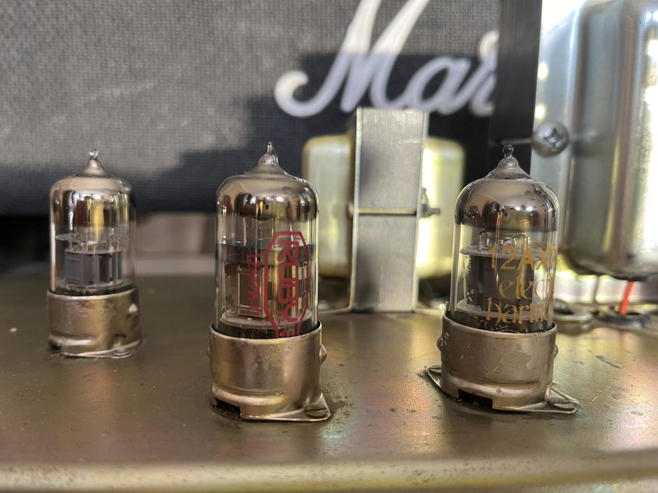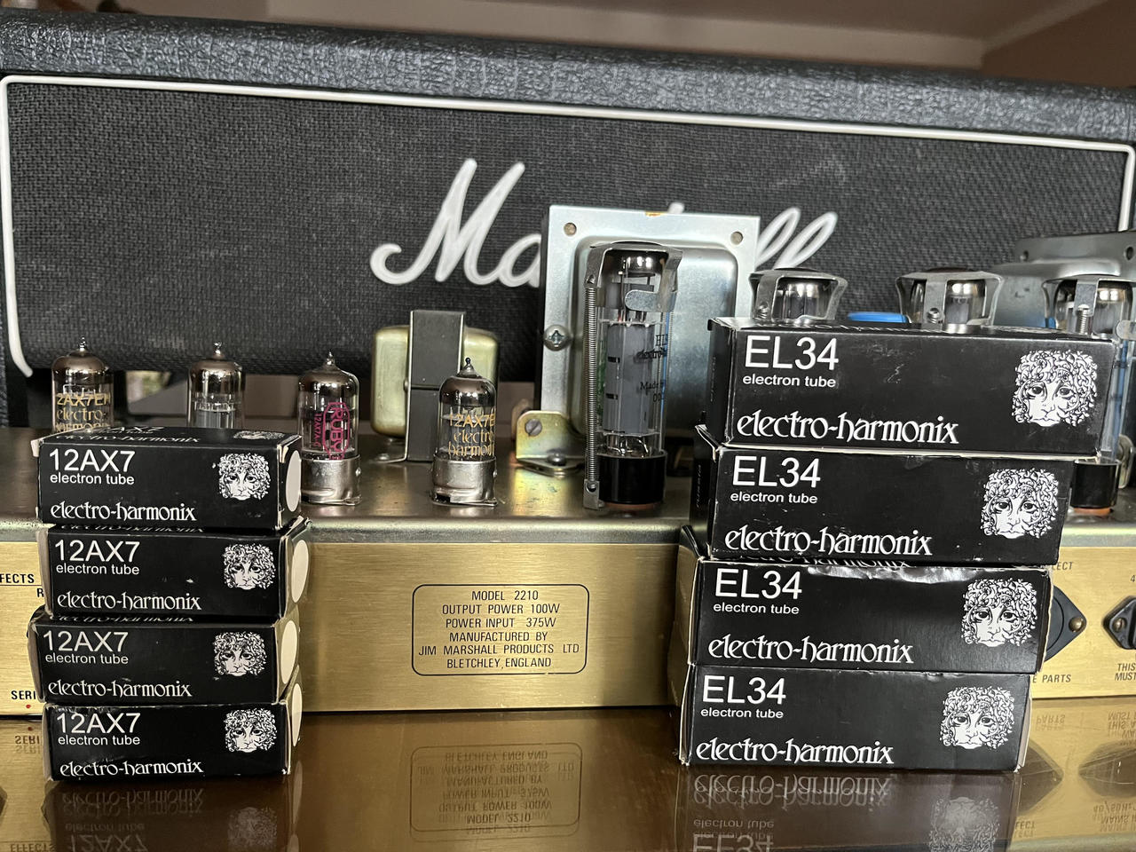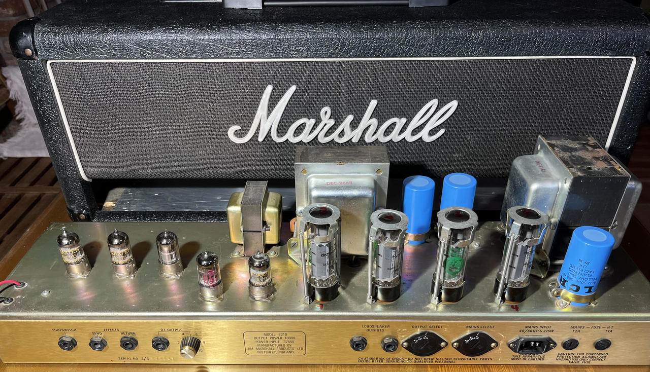 Prodám Marshall JCM 800-2210- 100w rok 1990. + footswitch. Dobrý stav technicky i pohledově je ok, nové párované elektronky Electro-Harmonix viz obrázek měněny cca před dvěma měsíci, zesilovač prošel zároveň také servisní prohlídkou, vše seřízeno a ok. Od té doby toho moc nenahrál. Je v původním stavu bez změn a úprav.