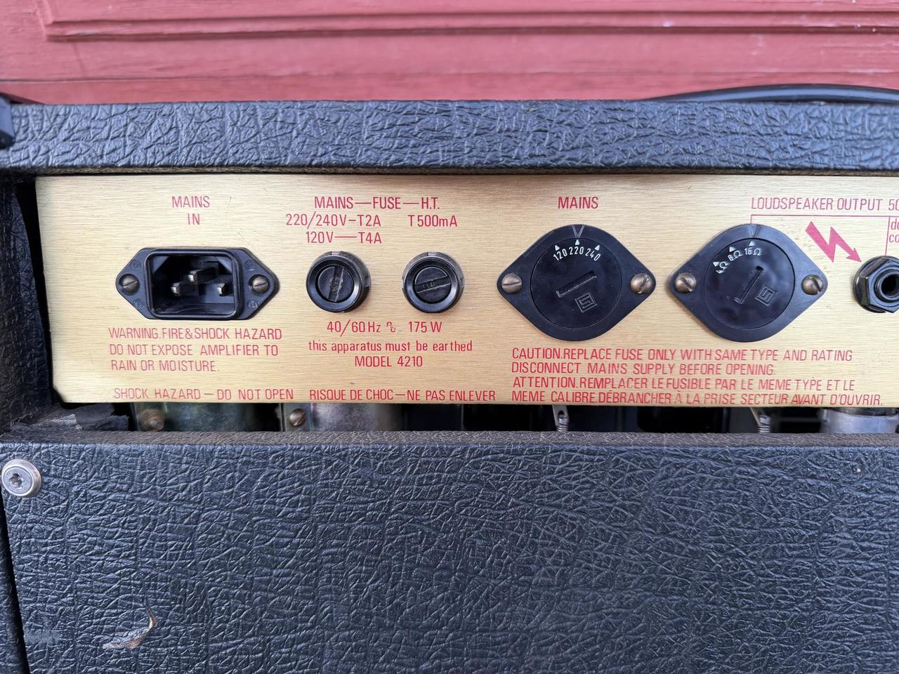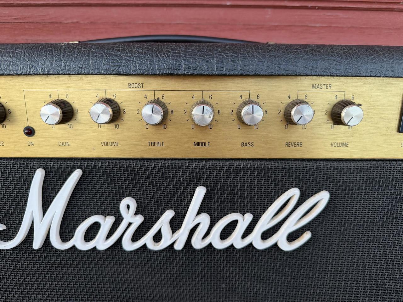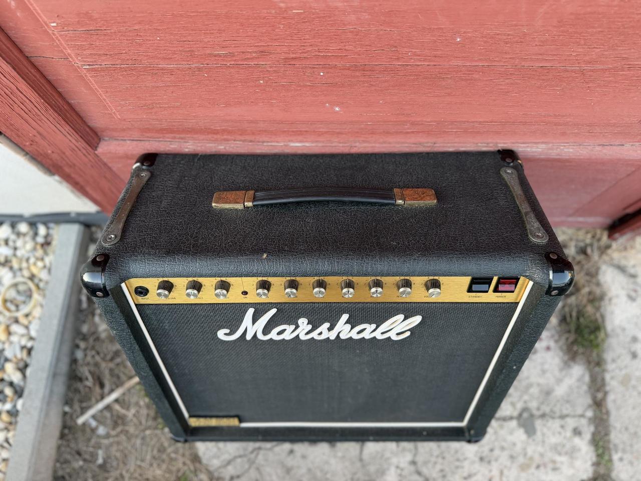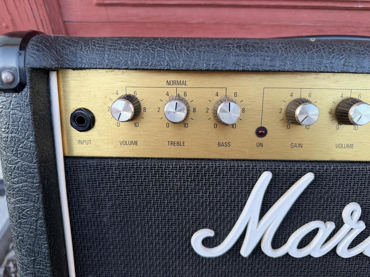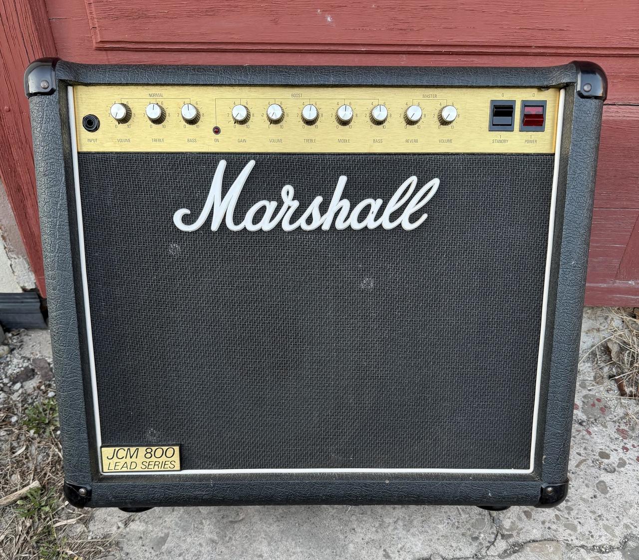 Prodám kytarové celolampové kombo Marshall JCM800, 1x12”, dvoukanál, lampy 2 X EL34 JJ + 5 X ecc83 (lampy nedávno měněné), repro Rola Celestion G12-80, sériová efektová smyčka, včetně nožního přepínače přepínajícího kanály a reverb, pružinový reverb, 100% stav - po kontrole u Dušana Zemana (DorD). Mám toho moc a je načase zredukovat stavy. Lokalita Hranice.