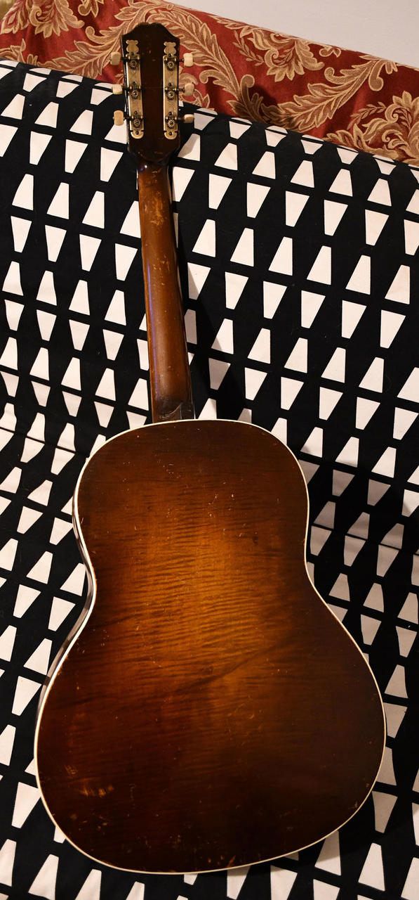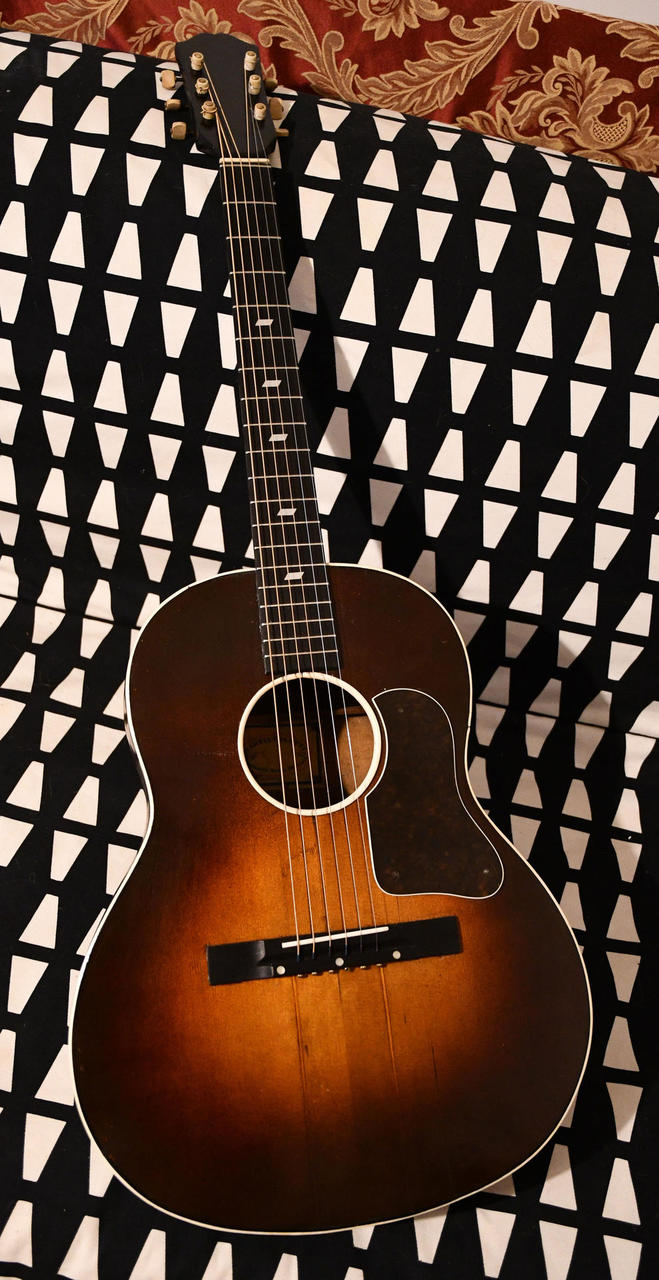 Jedná se o starší verzi modelu G50, je v pěkném a plně hratelném stavu (v krku instalována pasivní výztuha, hmatník je přepražcovaný), vrchní deska je smrková, zadní deska z jednoho kusu žíhaného javoru, hmatník je ebenový s typickými pozičními značkami (také se objevovaly na kytarách Radiotone). Kytara má krásně vyvážený zvuk a dlouhý sustain, výborně se prosadí i ve vyšších polohách. Zároveň se jedná i o historicky cenný kousek, všechny součástky jsou původní (včetně typických ručně gravírovaných mechanik s válečky, kobylky a pickguardu, sedlo je nové kostěné). Rád poskytnu více info po telefonu či skrze zprávy zde na Hud. bazaru, dejte vědět a domluvíme se. Případně kytaru rád předvedu osobně v Praze.