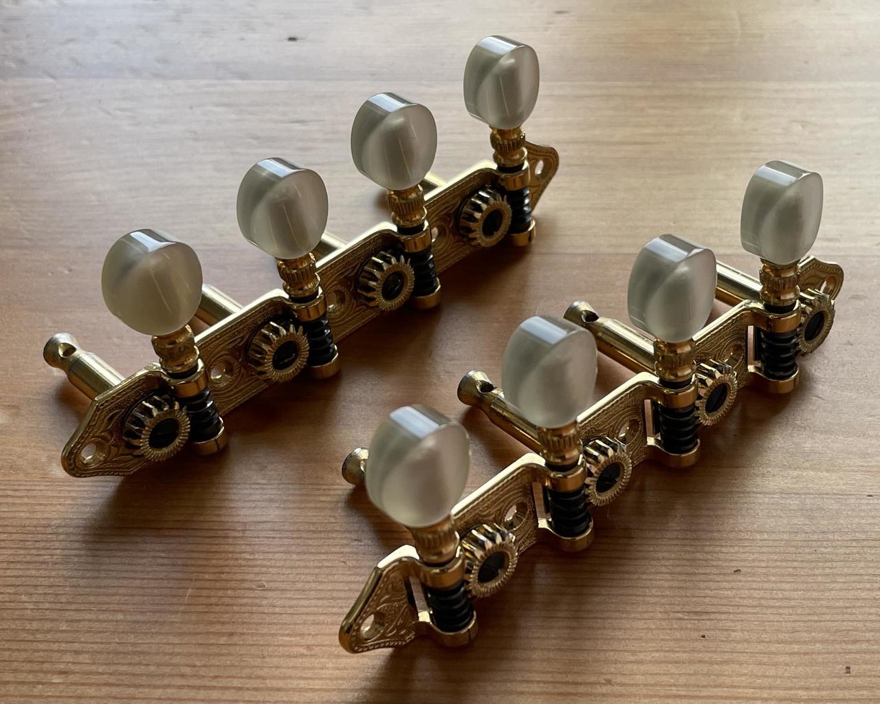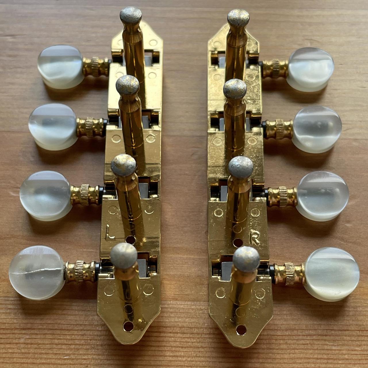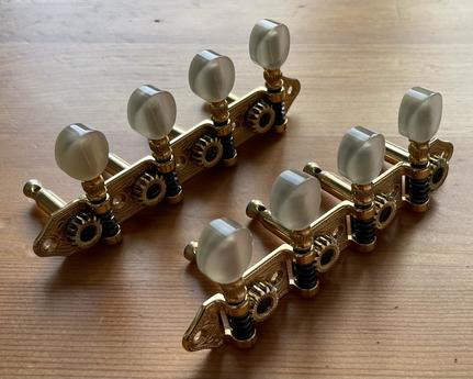 Prodám funkční použitou mechaniku Schaller pro mandolínu typu A. Finiš gold, včetně původních průchodek. Rondelky z pearloidu, jedna poškozená - slepovaná (viz foto).