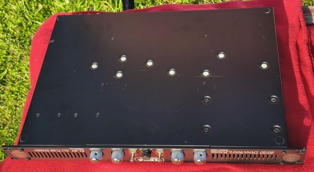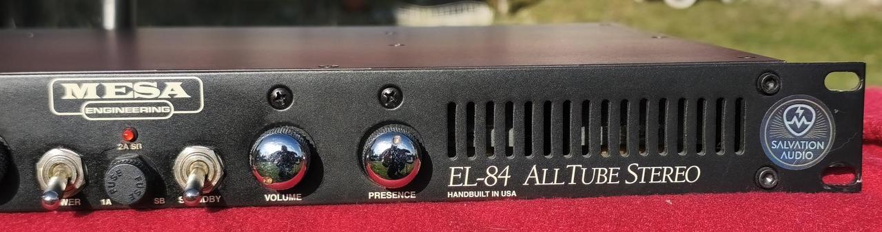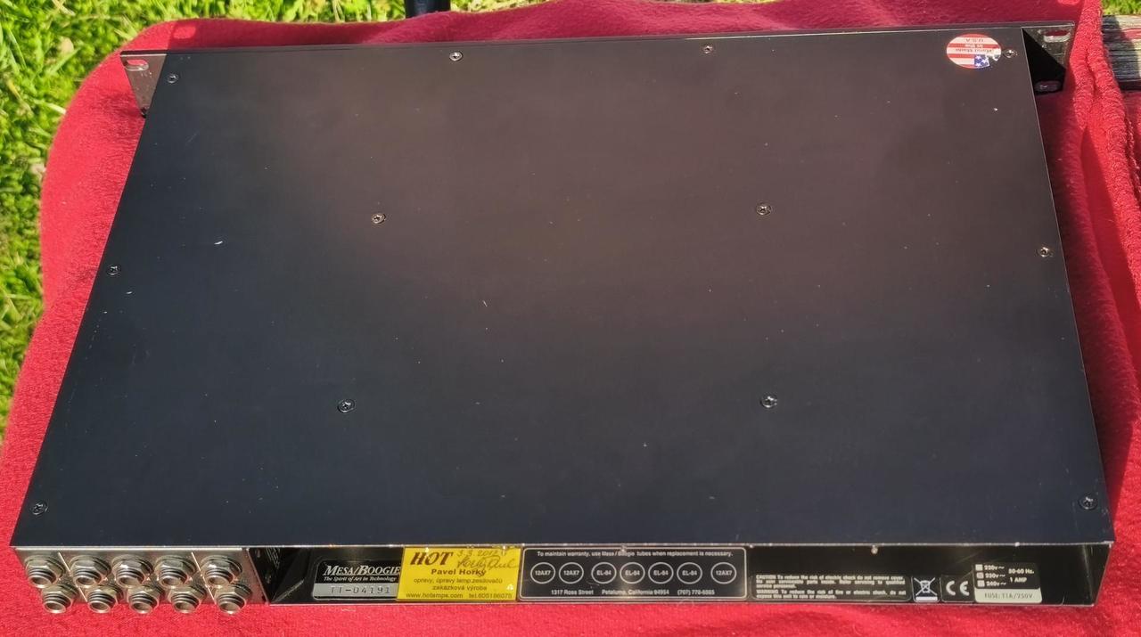 - dodělaný Deep Mod od Salvation audio (na přepínač) - pěkný stav, viz. foto ---------------------------------------------------------- Celolampový kytarový stereo koncový zesilovač, který vám zabere 1U pozici v racku. Značka Mesa/Boogie zaručuje vyjímečnou kvalitu zpracování a nadstandartní hudební zážitek. Výkon Zesilovač je stereo, takže nabízí dva kanály po 20W. O zesilování se starají dva páry EL84 elektronek. Dyna-Watt™ Patentovaná technologie, která posouvá dynamiku aparátu za hranici dvacetiwattových aparátů. Ovládání Každému kanálu lze nezávislé nastavovat hlasitost a PRESENCE (proto jsou přítomny tři 12AX7 elektronky). Vyšší nastavení PRESENCE dodává zvuku jiskřivost, nižší nastavení naopak činí zvuk tlustší a teplejší. Možnosti připojení Na zadní straně nalezneme několik jack konektorů rozdělených do dvou sekcí (A/B), což je logicky rozdělení podle jednotlivých kanálů. Každý kanál je tedy osazen vstupem pro výstup z předzesilovače, několika výstupy do reproboxů (rozlišených podle impedance) a také výstupem SLAVE, který umožňuje zesilovač připojit k dalšímu zesilovači, k získání vyšších výkonu. Vlasnosti • Výkon: 2x 20W • Koncové lampy: 4 x EL84 • Lampy v předzesilovači: 3x 12AX7 • Ekvalizace: presence • technologie Dyna-Watt™ • Slave out • funkce Standby