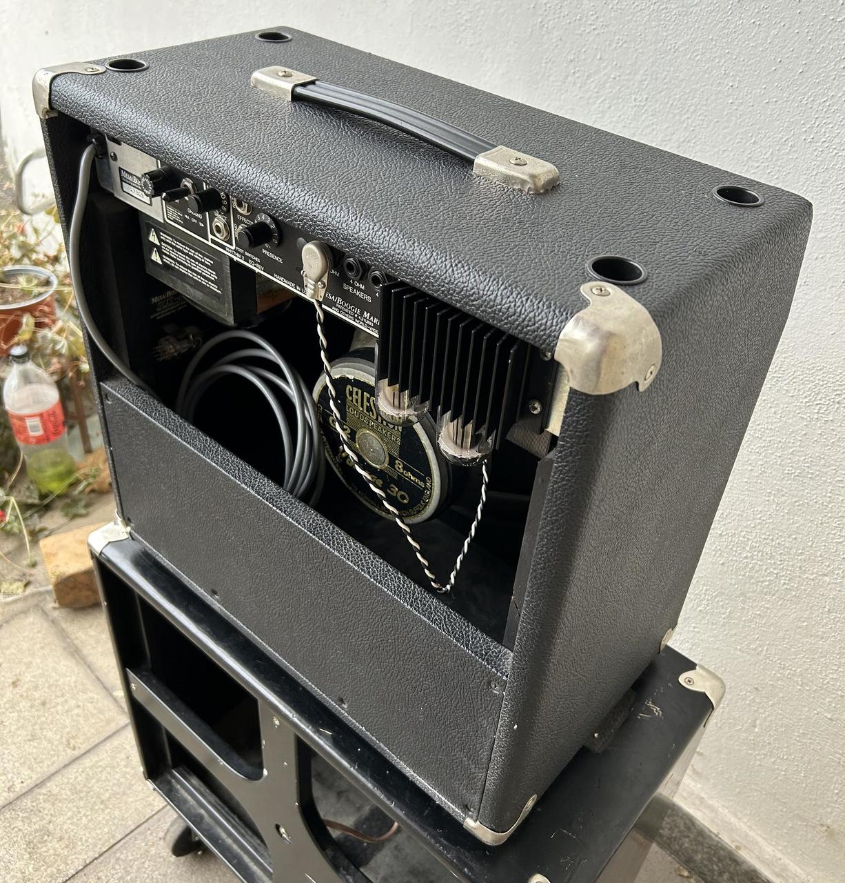 Kombo je ve výborném stavu, kupováno v Německu od prvního majitele (včetně původní kartonové krabice). Zvukově od křišťálově čistého zvuku po tvrdé zkreslení - verze blue stripe je považována za nejagresivnější s nejvíce zkreslením ze všech pěti verzí Mk3. Verze bez simul-class (60 W, dvě koncové lampy) a bez EQ. Kombo je opravdu, opravdu hlasité. Push/pull potenciometry (některé při otáčení malinko chrastí, ale nic závažného). Původní reproduktor vyměněn předchozím majitelem za Celestion Vintage 30 (viz foto). Ke kombu jsou standartně dva přepínače Lead/Rhythm, Rhythm 2. Rozumná dohoda možná. Pouze osobní převzetí (a samozřejmě neomezené vyzkoušení na libovolnou hlasitost) ve zkušebně v Králově Dvoře u Berouna. Neposílám.