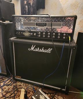 V30 repro (ideální na metal / hard rock) klasický Rectifier sound – pevný, čitelný gain kanály + solo boost plně funkční, bez problémů Set je sehraný, vhodný jak na zkušebnu, tak koncerty. Stav velmi dobrý, běžné kosmetické opotřebení. Možnost vyzkoušení samozřejmostí. Cena: 43 900 Kč (při rychlém jednání sleva)
