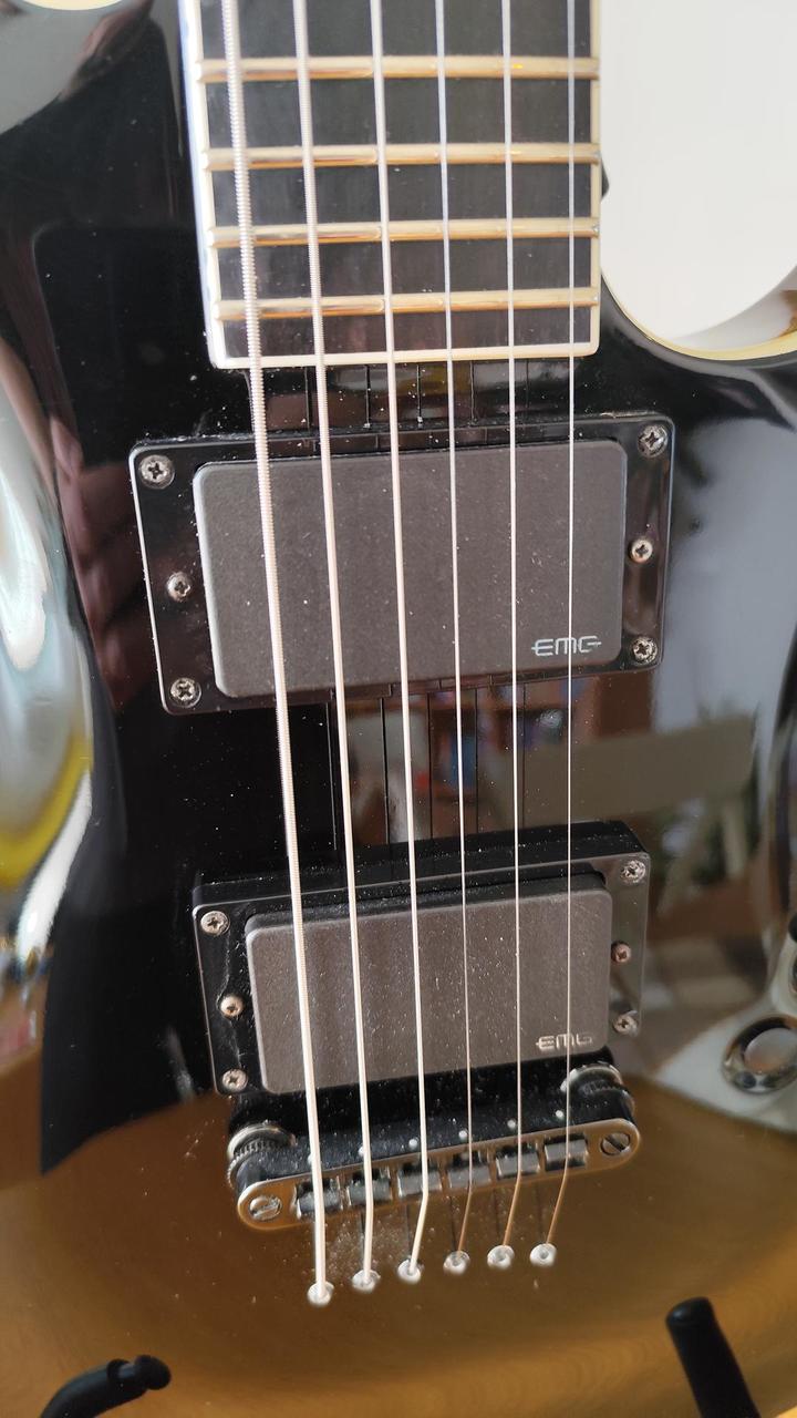 Mahagonove telo a lepeny mahagonovy krk. Ebenovy hmatnik s 24 medium jumbo prazcami, 25,5 palca. Tusq nulty prazec a kobylka Tonepros licenced, struny cez telo. Ladiace mechaniky Grover. Na gitare boli vymenene snimace za EMG 81 a EMG 60. Tone potak je prec a volume je presunuty na tone pot miesto. Ajtak tone potak nikto nepouziva, zvuk je lepsi a aj pristup k 3 polohovemu prepinacu je ovela lepsi. Otvor pre volume pot je len zaslepeny, da sa bezproblemov otvorit. Krytku na truss rod na hlave mam a dodam s gitarou. Gitara je v super stave, bez skrabancov a odrenin, bezne znamky pouzivania. Gitara hraje krasne, rezonuje, EMG tlacia tazke maso, krk ma od vyroby satin upravu a super pristup k vyssim poloham. Bola iba doma, alebo v skusobni. Pridam aj pevny kufor CBS . Poslem aj kurierom do CR. Predavam, lebo prechadzam na 7ky a 6ky uz velmi nevyuzivam.