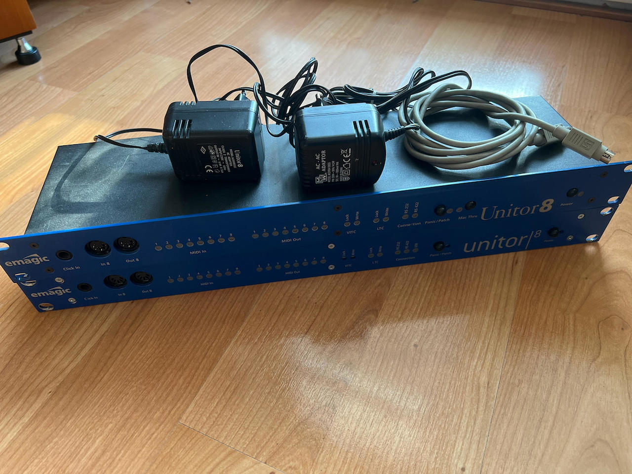 Prodám Emagic Unitor 8 (USB) + Unitor 8 (Serial) propojené do sítě (kabel přiložen) - celkem 16 MIDI okruhů. Funguje s moderním Apple Mac bez problémů (na PC nejsou drivery) - 3.500,- + Emagic AMT8 (USB) + Unitor 8 (Serial) propojené do sítě (kabel přiložen) - celkem 16 MIDI okruhů. Funguje s moderním Apple Mac bez problémů (na PC nejsou drivery) - 3.500,-