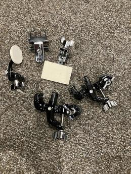 1x držák paliček na obruč BD (nové) x systém pro uchycení k ráfku bubnu - pro mikrofon , nebo perkuse ...