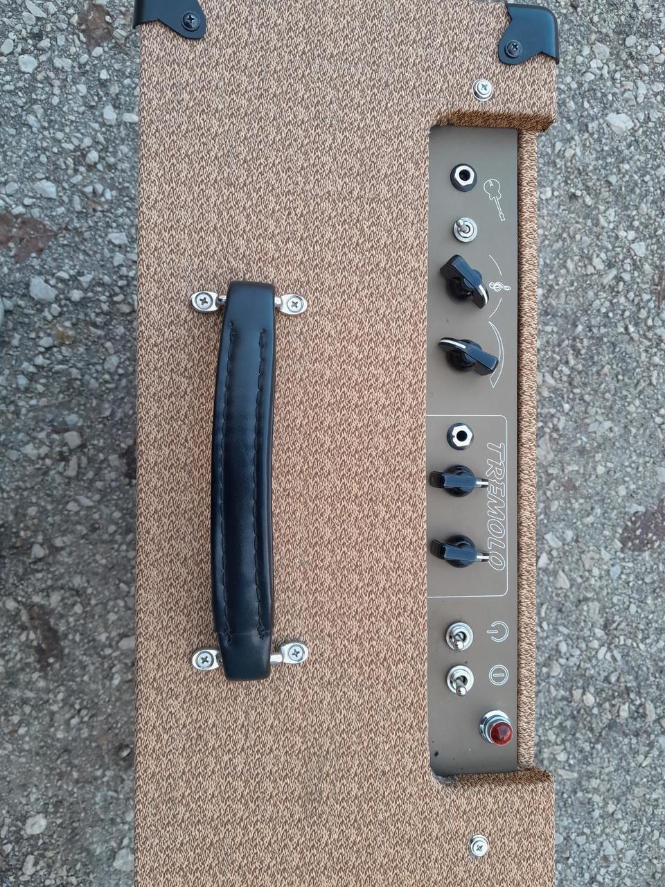 typové označení P-TF 22848 - 35W, 8Ohmů výstup. Osazoval se do tweedových verzí modelů: Pro Reverb, Tremolux, Bandmaster a Vibrolux. Síťák je od Hammond, typ 291BEX.Tlumivka ve zdroji je také Hammond.V předzesilovači je dvojitá trioda ECC83, v invertoru dvojitá trioda 6SL7, v oscilátoru tremola opět ECC83, v koncovém stupni jsou dvě výkonové pentody 5881.Ve zdroji pak dvojitá dioda GZ34, Korpus komba je ze smrkového masivu, pečlivě vysušená spárovka a přední deska je z březové překližky.Potenciometry Bourns,přepínače od Apem, bižuterie veškerá v audiokvalitě. I propojovací káblíky v signálové cestě jsou speciály pro audio použití.