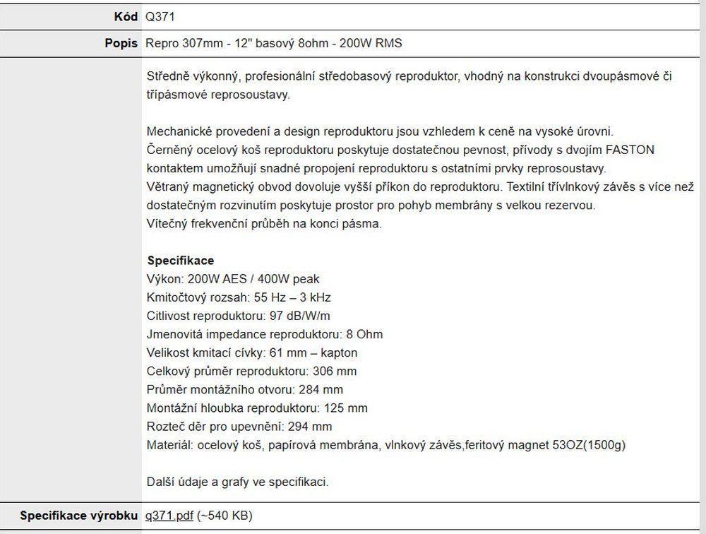 2x repobox osazen Q371 - Hadex - viz. foto 8R 200/400W - 55Hz - 5 kHz neohrané - repro jsou de-facto s bídou "zahořené"