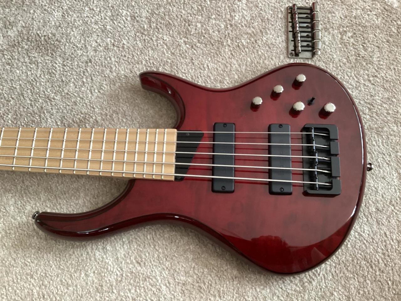 rok výroby: 2021 menzura: 35" rozteč strun: 19 mm hmotnost: 3,9 kg tělo: mahagon top: Maple Burl povrchová úprava: Transparent Cherry gloss krk: javor profil krku: asymetrický hmatník: javor počet pražců: 24 hlavice: matching headstock Volume s funkcí push/pull aktiv/pasiv, Blend, Bass, Treble, Mids, přepínání frekvence středů 250 / 500 / 800 Hz pomocí 3polohového přepínače Úpravy / upgrade snímače: Bartolini P25C-B USA (neck + bridge) předzesilovač: Bartolini NTMB+F 3-band preamp (https://www.thomann.de/cz/bartolini_ntmbf_3_band_bass_preamp.htm) kobylka: Hipshot (původní kobylka je součástí prodeje) Ceník upgradů u výrobce zde: MSRP $744 (doporučená maloobchodní cena od výrobce) a MAP (nejnižší veřejně inzerovaná cena) je $592 - viz https://www.mtdbass.com/ordering. Zvuk viz video. Asymetrický krk je velmi dobře hratelný. Díky upgradu na USA Bartolini snímače a preamp je nástroj zvukově i kvalitativně prakticky srovnatelný s modelem MTD Kingston ZX. Nahrávky coverů - zde již je zvuk ovlivněn efektovým řetězcem, který je v popisku každého videa: https://youtu.be/JaEj_C05ZFc https://youtu.be/crRqwjPZOy8 https://youtu.be/lbe6mkijHGw Basa je technicky ve výborném stavu, velmi příjemný dohmat. Na těle je pár ťukanců a u závěsu popruhu je odprýsknutý lak, viz foto. Další snímky zde https://youtu.be/FHMRgTo0waM V ceně je i gigbag Fender. K vyzkoušení a k předání je v Plzni. Výměnu nehledám. Při příjemném jednání nebo cestě zdaleka mohu v určitých mezích vyjít cenově vstříc.