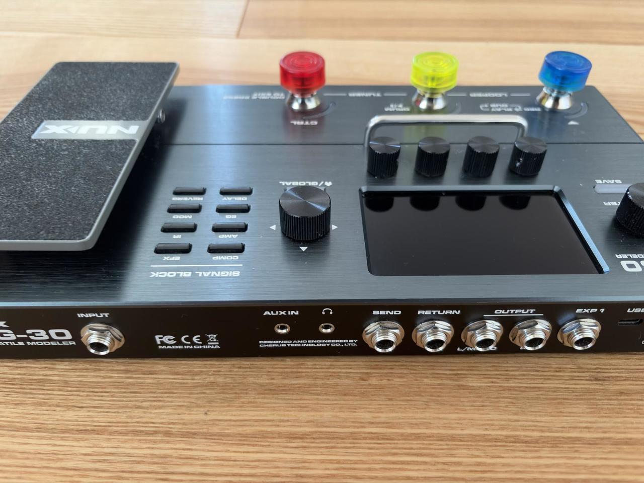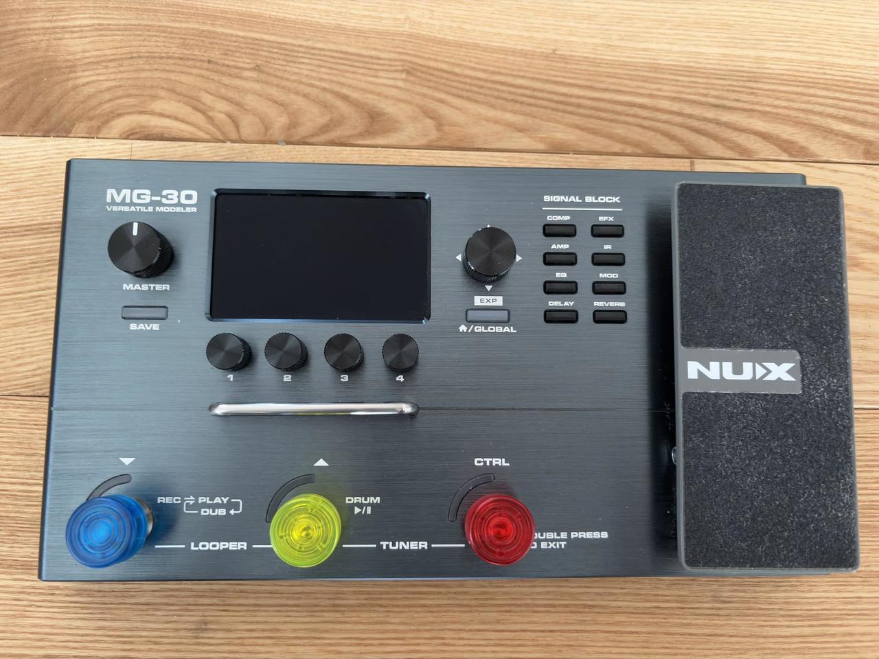 Nabízím multi-efekt NUX MG-30, s firmware V5 (nyní už je k dispozici ke stažení GEN2 firmware s NAM profily), kompletní balení včetně adaptéru a NUX NMP-2 Footswitch (extra 2 tlačítka k ovládání efektu).
