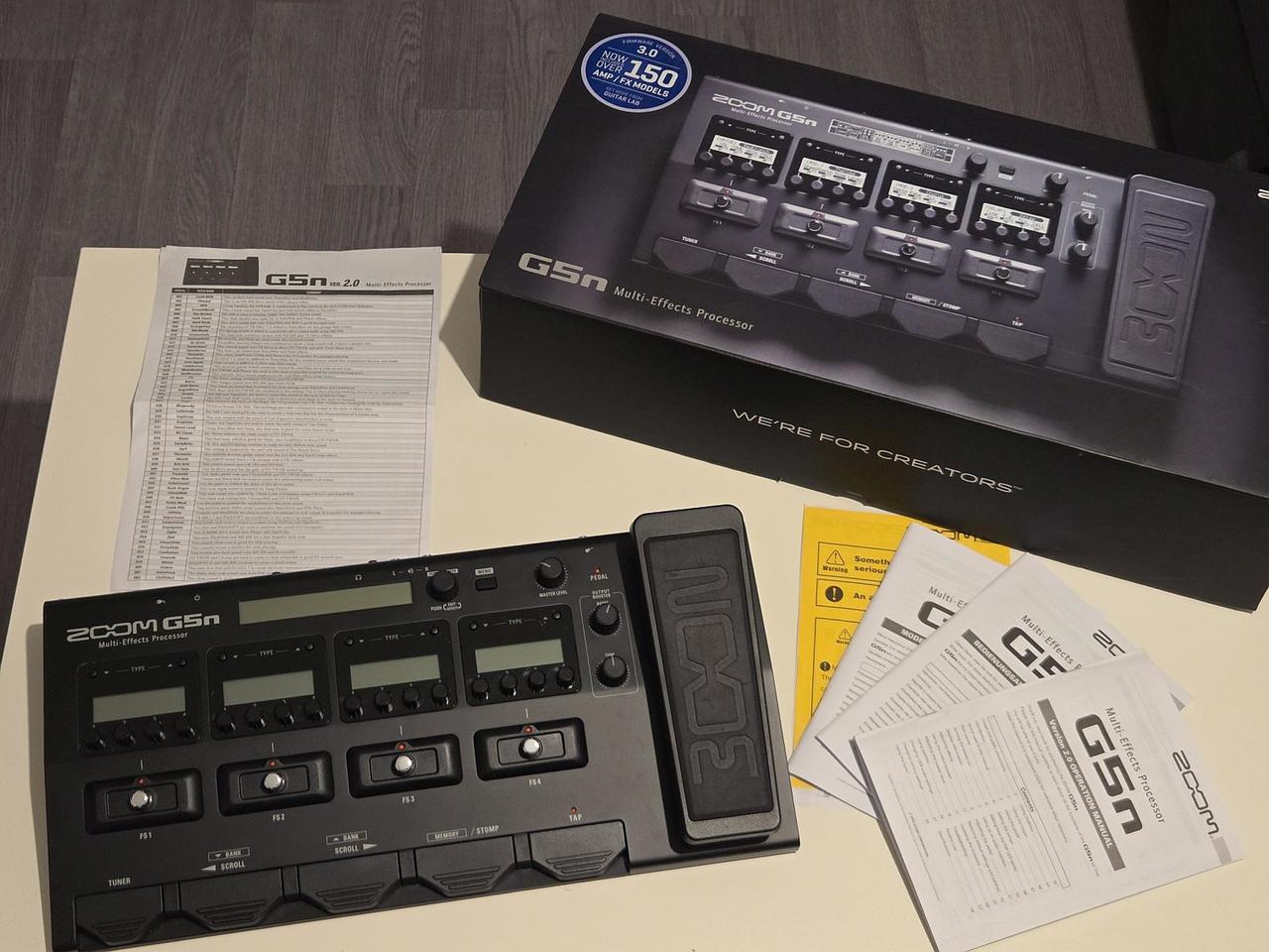 Prodám velký multiefekt od Zoomu model G5N ve stavu prakticky nového. Narozdíl od malých ekvivalentů má několik možností přepnutí a wah / volume pedál. Hraný pouze doma v bytě - občasně.