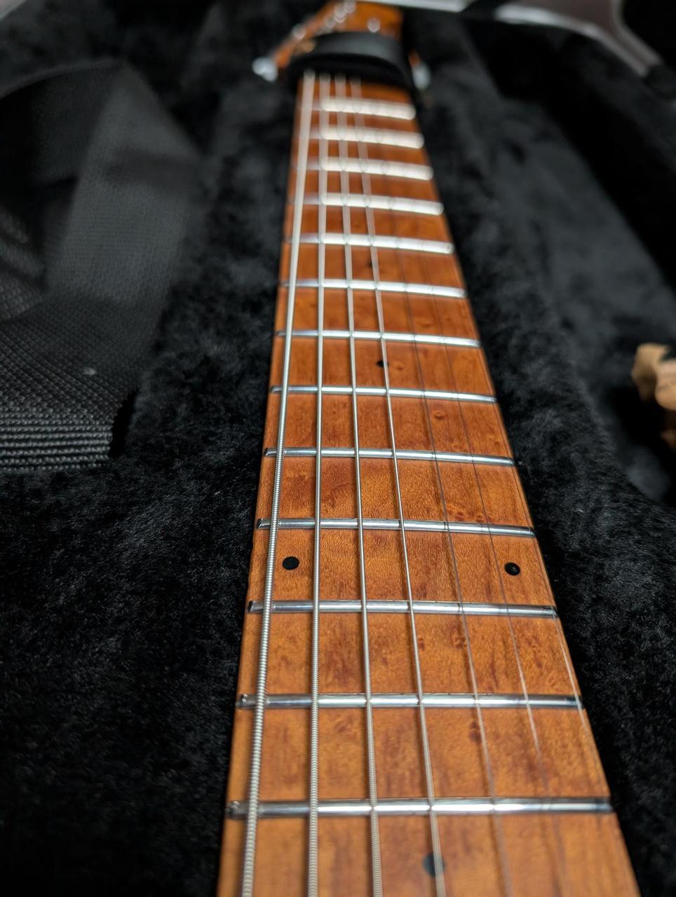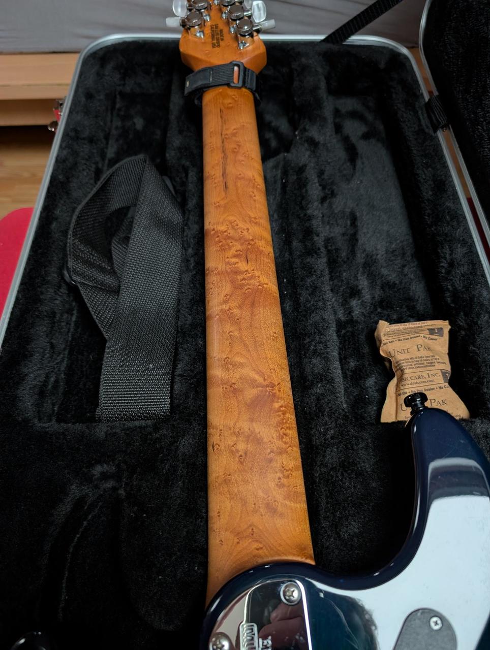 Jedná se o PDN (premier dealer network) v nádherné barvě Neptune Blue, vyrobena v roce 2014. Originální snímače DiMarzio Crunch Lab (kobylka) a LiquiFire (krk). Možnost rozepnutí snímačů. Piezo ok. Origo kufr. Kytara v krásném stavu, jen jeden malý ťukanec na laku (na fotkách je vidět nad snímačem).