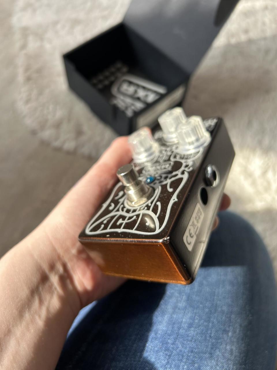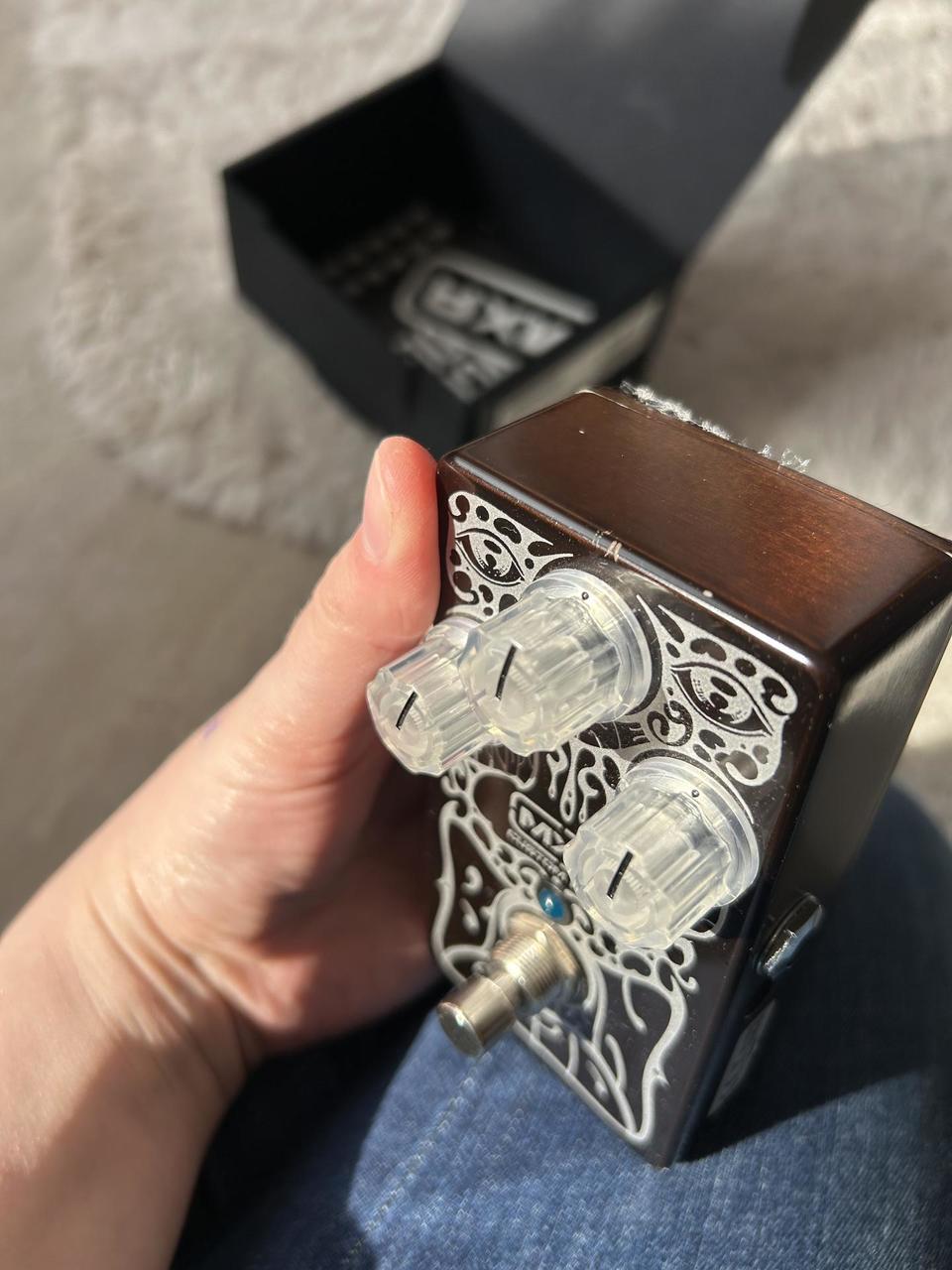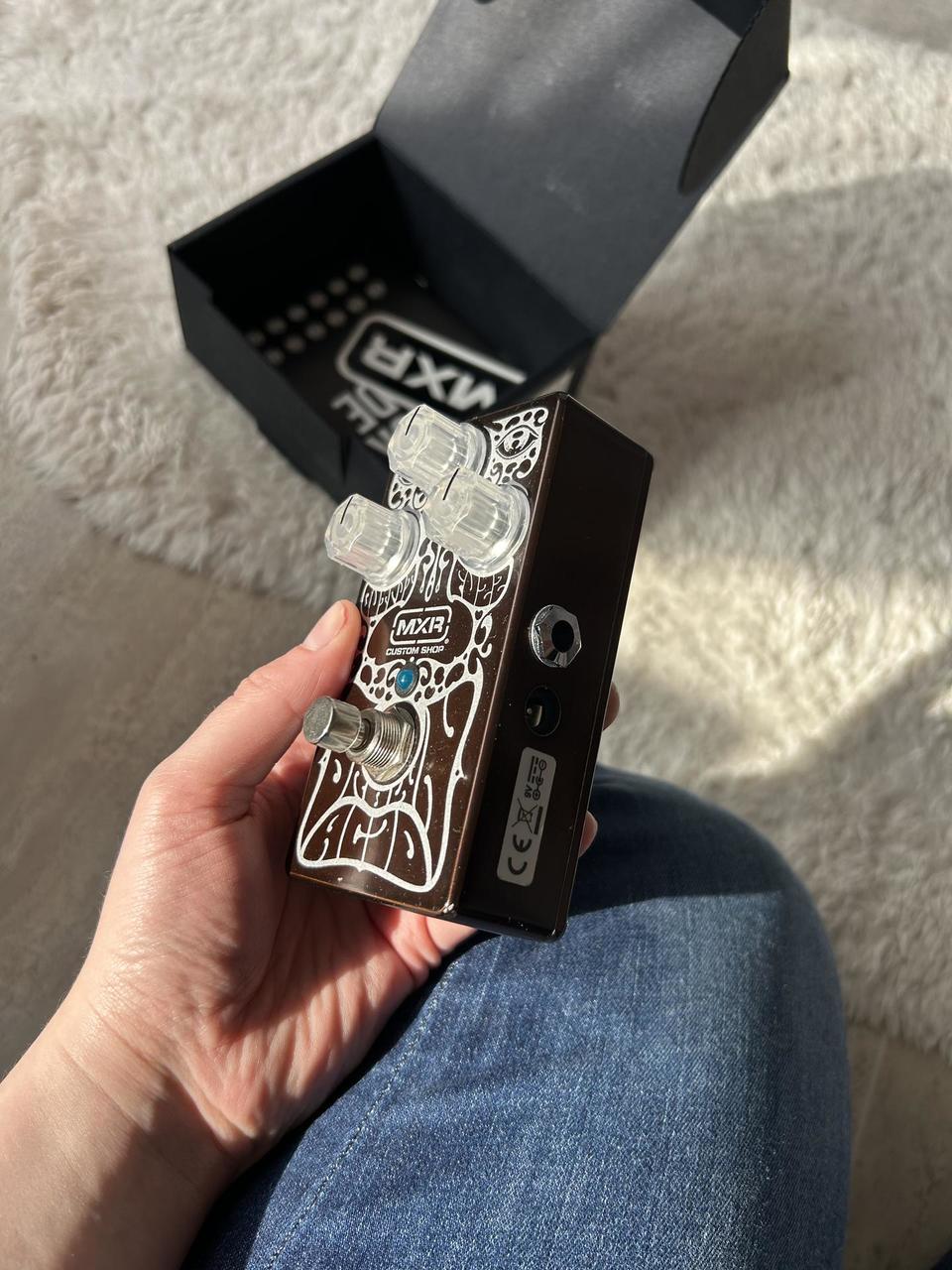prodávám tuhle krabičku, MXR Brown Acid. Je to fuzz. Je to custom shop, vyrobilo se ho jen 500 kusů, takže se už moc neprodává nový. Hraje perfektně, dělá, to, co dělat má. Jen je trochu oťukaný, jelikož jsem opičák, co si nehlídá, aby se mu v pedalboardu efekty netloukly. Všechno jde vidět z fotek. Ze spodní strany má ještě suchý zip, který případně nebude problém odlepit. Pro obsedantně kompulzivní jedince mám samozřejmě i originální krabičku z kartonu, lepící packy pod efekt a nálepky. Kupovala jsem ho pár let zpět z kytar.cz za 4290 Kč. Cena, kterou bych za něj chtěla, je 3300 Kč, kvůli těm ťukancům. K vyzkoušení je v Praze, případně jsem ochotná ho přivézt do Zlína. Nebo tam, kde zrovna budu hrát, ale to musíš přijít. Při zájmu piš na Facebook, nebo na 604390818