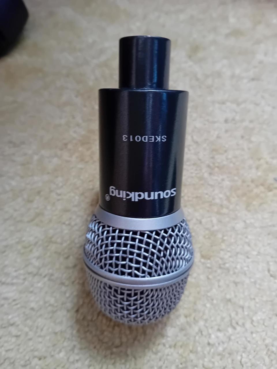 T-bone BD300( na kopák) T-bone Mb75 dynamic Soundking Skedo13 Mikrofony jsou vhodné k ozvučení bicích, nebo kytarových komb. Přidám mikrofonní kabely, nejlépe komplet ale možno i jednotlivě. Stav 100% Mohu zaslat zásilkovnou á 500,-
