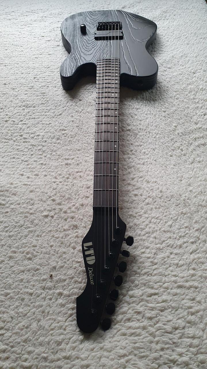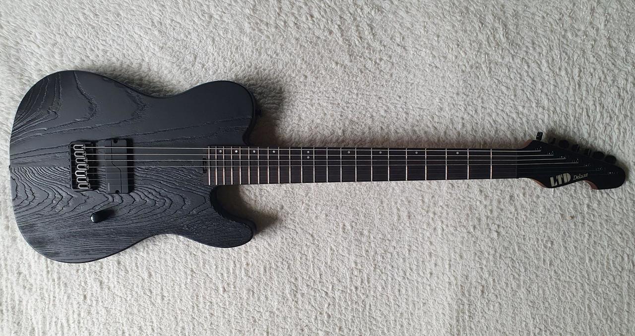 Ze zdravotních důvodů prodám ze svojí sbírky kytar ESP LTD 7strunné metalové tele TE-1007B v efektním kartáčovaném provedeni Black blast. Kytara se díky barytonové menzuře (685 mm) a pevné string-thru kobyle Hipshot nezalekne ani nejtvrdších stylû a podladit ji jde proklatě hluboko.
