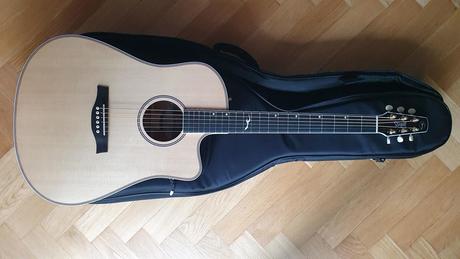 Jde o dreadnought s výřezem - top z výběrového smrku sitka, tělo z výběrového mahagonu, vše lakované ve vysokém lesku. Pohodlný mahagonový krk naopak v saténovém provedení. Hmatník Richlite (menzura 648 mm, šířka graphtech nuláku 43,7 mm, 21 pražců). Má pro Seagully typické řešení hlavy, které díky rovnému vedení strun přes nulák eliminuje problémy s laděním. Kytara je z výroby osazena teď už legendárním snímačem/předzesilovačem L.R.Baggs Anthem (ovládání v rezonančním otvoru). Kanadská kvalita bez kompromisů. Nástroj je nehraný, bez jakékoli známky opotřebení - stav nového kusu (10/10), stějně tak originální gigbag. Na Kytarách se prodává za 55 tis., nabízím za 43 tis. Jen prodej, ne výměna. Osobní předání Praha (3).