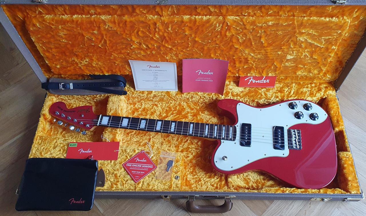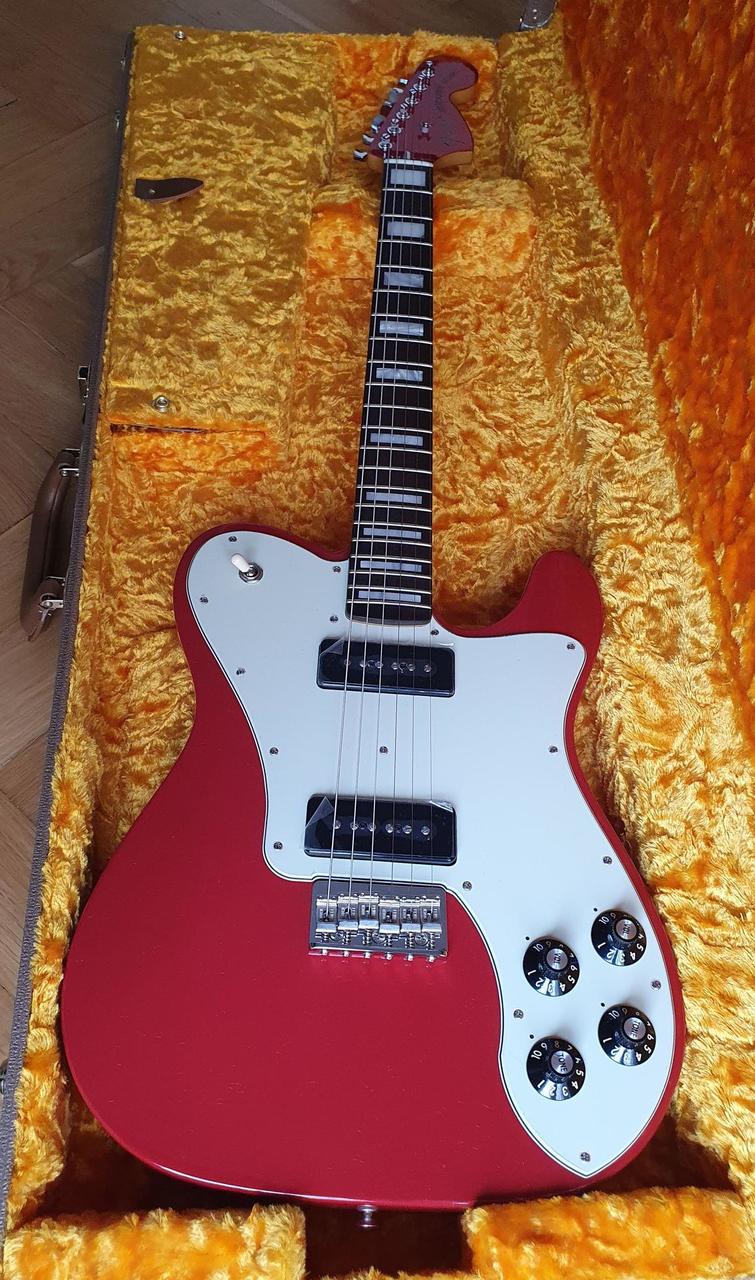 Ze zdravotních důvodů a nemožnosti hrát prodám ze svojí sbírky Fender Chris Shiflett Cleaver Telecaster Deluxe v barvě Dakota red, tedy signature model sólového kytaristy Foo Fighters. Jde o nekompromisní rockovou mašinu, která díky svým bezbrumovým P90kám (CS90 Christ Shiflett) nenechává nic náhodě.