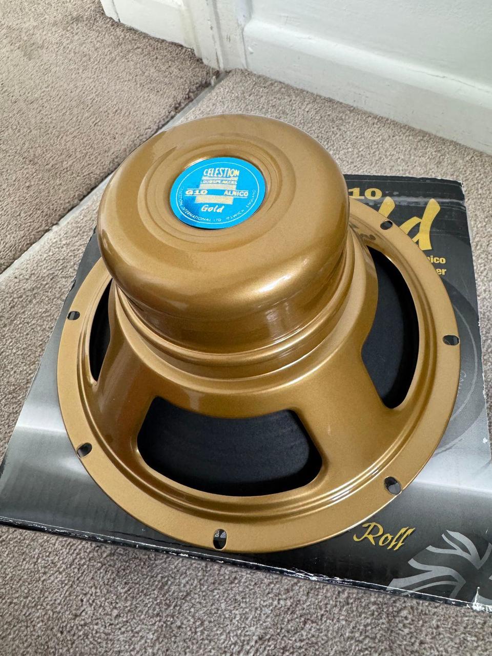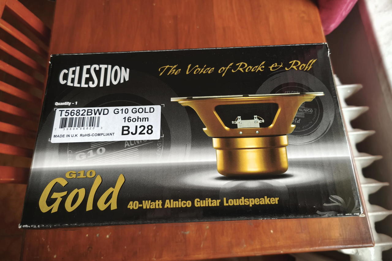 Prodám úplně nový originálně zabalený 10" alnico kytarový reproduktor Celestion G 10 Gold s výkonem 40 W a impedancí 16 Ohm. Nikdy nebyl vyjmut z krabice, fotografie reproduktoru jsou ilustrační.