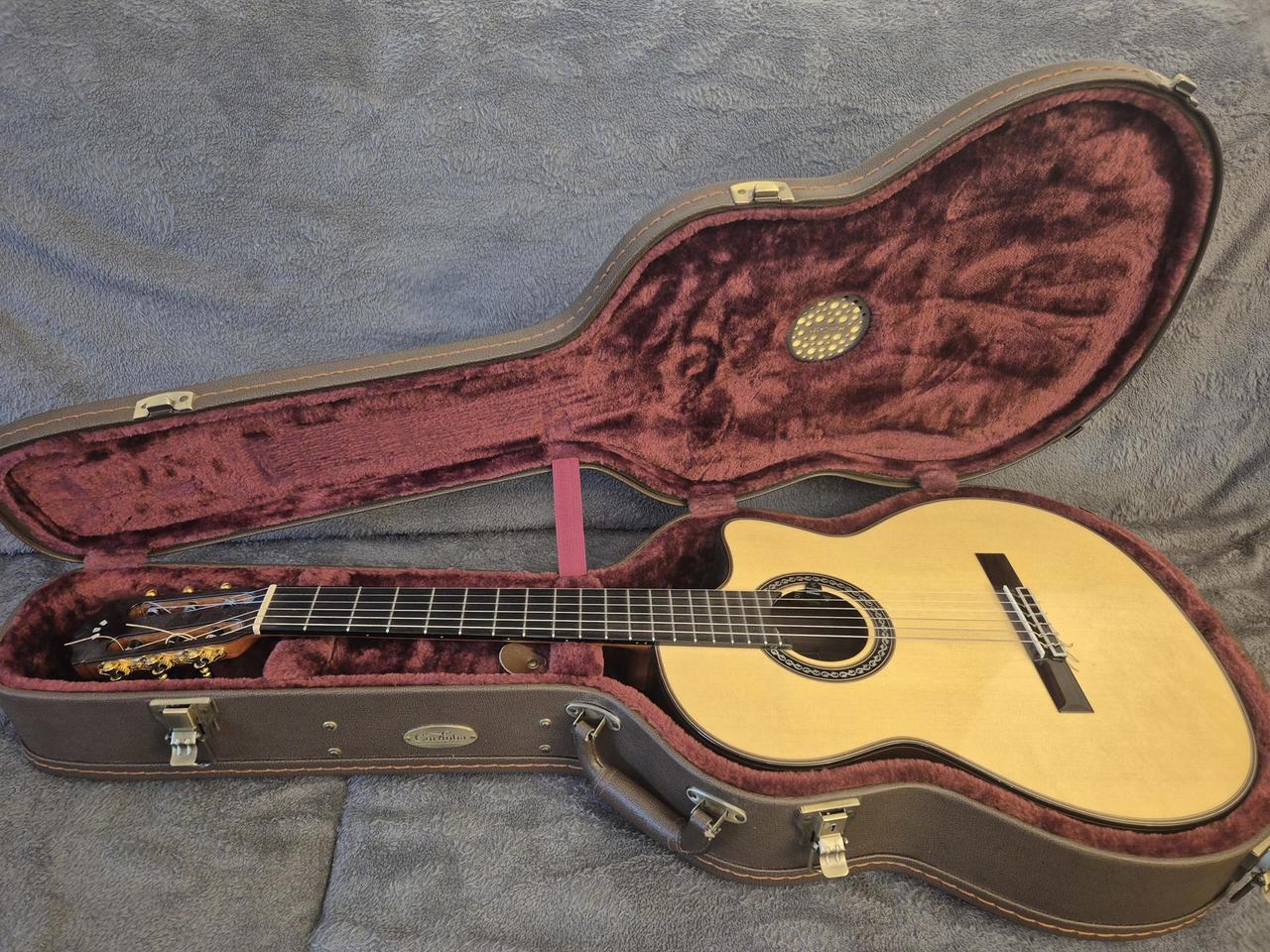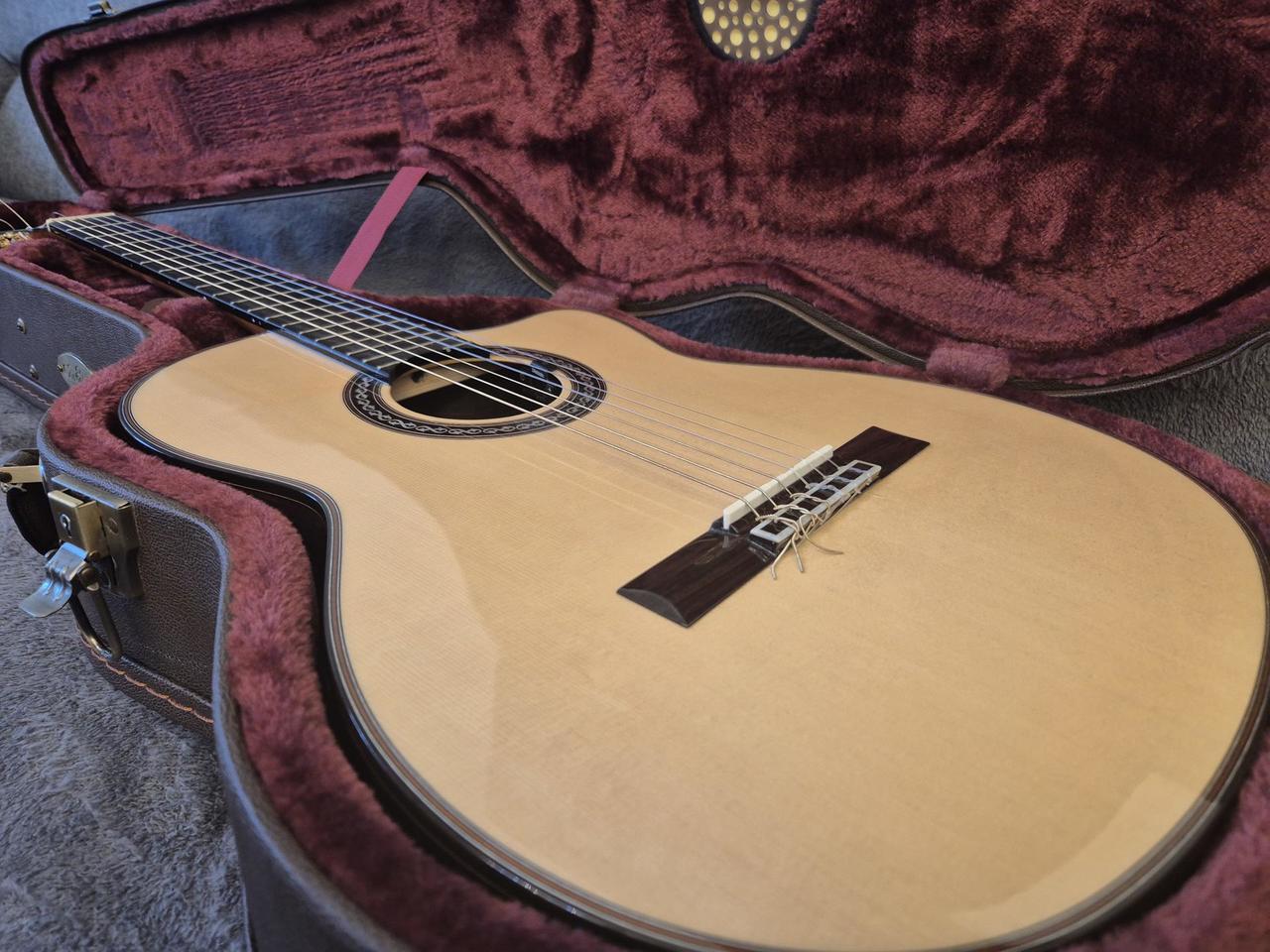 Skvělý a ceněný profi nástroj který již není v prodeji. Celomasiv! Vyšší řada než studio model. Luthier serie. PC 37000,- Stav nového kusu. Nultý pražec a kobylka kvalitni TUSQ lepsi pro piezo snímání ale v ceně je i sada z žirafí kosti z větší hustotou než kost hovězí. Lze si tak nastavit zvuk nástroje podle potřeby. Struny temeř nové Pro Arté Carbon EJ46FF.