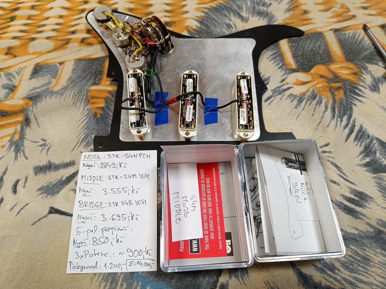 Chceš bezbrumového stratocastera? Prodám nevyužitý osazený pickguard pro stratocastera, který je osazen 3x bezbrumovými snímači Seymour Duncan STK-S4NPCH, STK-S4M, STK-S4B...vše v topstavu.
