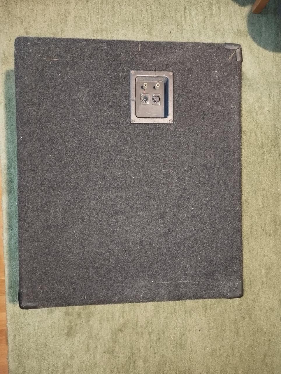Výrobce neznámý, teda pro mně určitě. Těžká a velká: 74 x 63 x 36 cm Zvláštní konektory, nálezový stav, nejsem schopen jí vyzkoušet. Výkon a impedanci neznám. Levně, třeba i na díly, zabírá moc místa. Stěny jsou z MDF, střeďák má uvnitř svou budku, viz fotky.