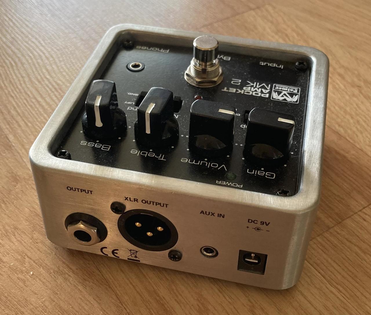 Kapesní kytarový předzesilovač Palmer Pocket Amp MK 2 nabízí širokou škálu autentických zvuků lampových aparátů od ultra čistých tónů s velkým headroomem po high gain distortion. Třípolohové přepínače typu zesilovače (US, UK, Vintage), struktury gainu (Heavy, Crunch, Clean) a simulace mikrofonního snímání reproboxu (Off X, Center, Classic) vám v kombinaci s ovladači výstupní hlasitosti, gainu a dvoupásmového ekvalizéru umožní nastavit vintage i moderní zvuky podle vaší libosti, navíc díky kvalitním operačním zesilovačům se skvělým S/N (signal to noise) poměrem. Kromě nástrojového vstupu a výstupu Palmer Pocket Amp MK 2 nabízí i symetrický XLR výstup, Aux in vstup a sluchátkový výstup. Představuje tak více než jen nástroj pro přímé nahrávání a poslouží i jako domácí aparát na cvičení, overdrive/distortion pedál nebo jako kytarový DI box (v bypass režimu). Šasi krabičky je zhotoveno z hliníku. K napájení použijte 9V baterii nebo 9V adaptér (adaptér není součástí balení).