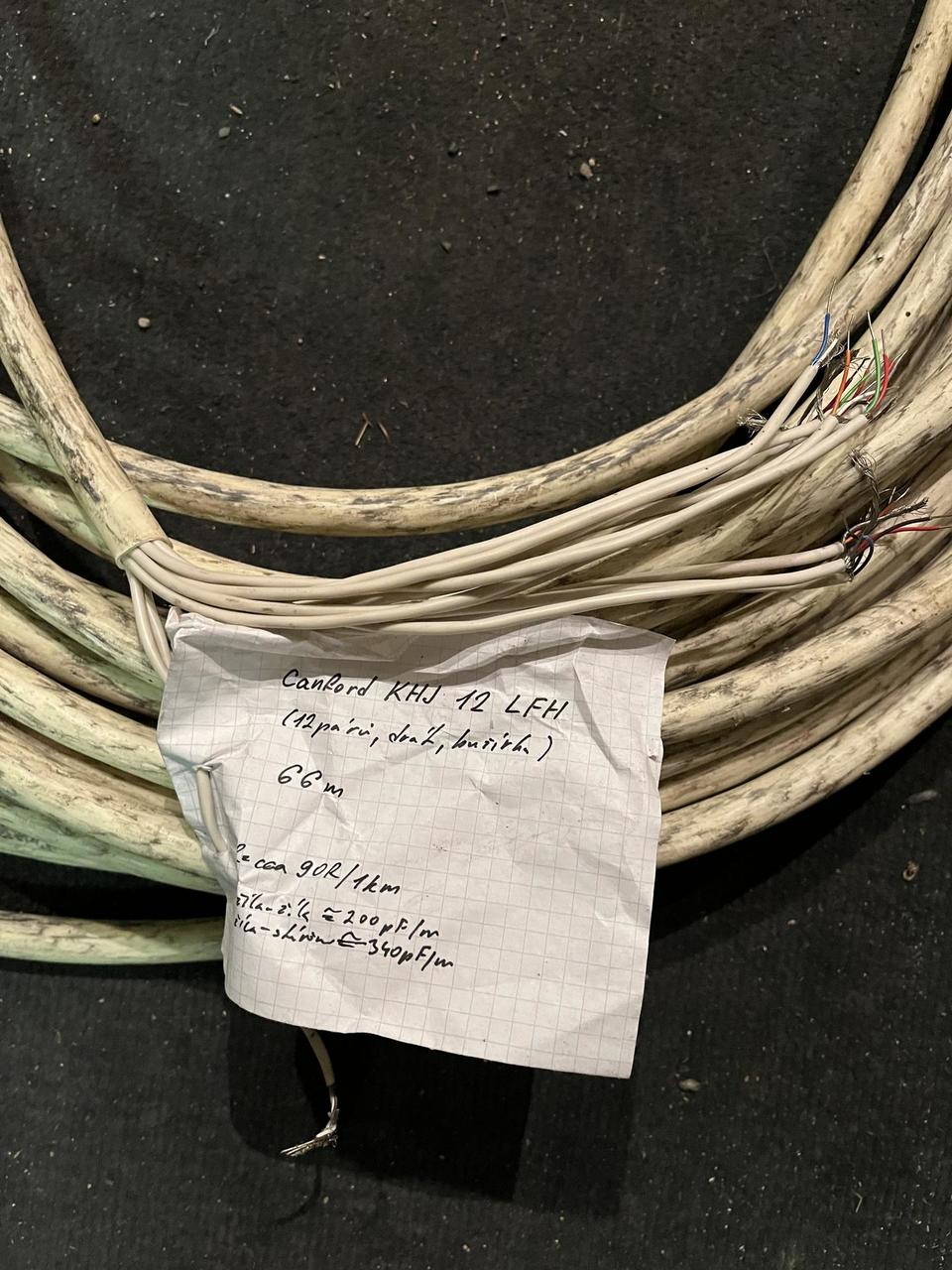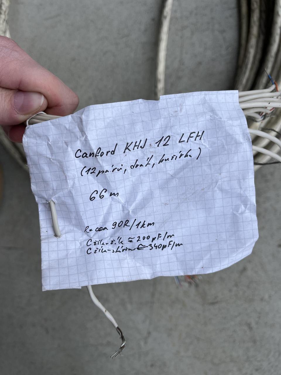 12 párů/kanálů Z instalace, proměřený a zkontrolovaný R_zily = 90R/1000m C_zila-zila = 200pF/1m C_zila-Scr. = 340pF/1m Celkem 66m párák, multipár kabel