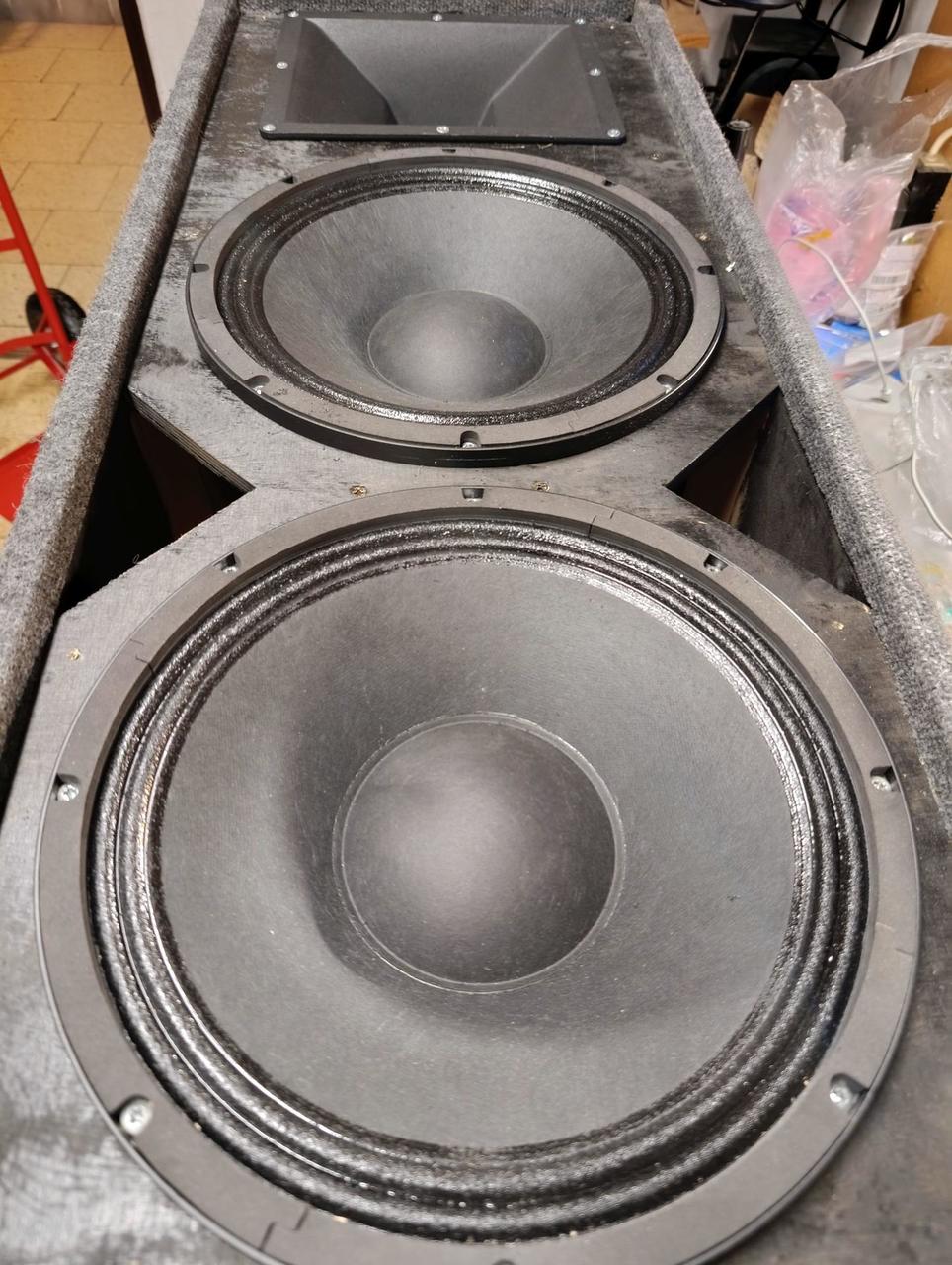 - impedance: 4 Ohmy - výkon: 800 W - 2x středobasy B&C Speakers 12NDL76-8 - driver B&C Speakers DE750TN-8 - zvukovod B&C Speakers ME60 - pasivní výhybka dle sestavy Prodance - materiál: 15mm překližka - potah koberec, mřížka s průzvučným molitanem (není na fotce), madla, hnízdo na stojan, Neutrik Speakon Rozměry: 100 x 40 x 40 cm Cena za dva kusy: 24000Kč Důvod prodeje: dlouhodobě nevyužívané. Pouze osobní odběr. Mrkněte na mé ostatní inzeráty.
