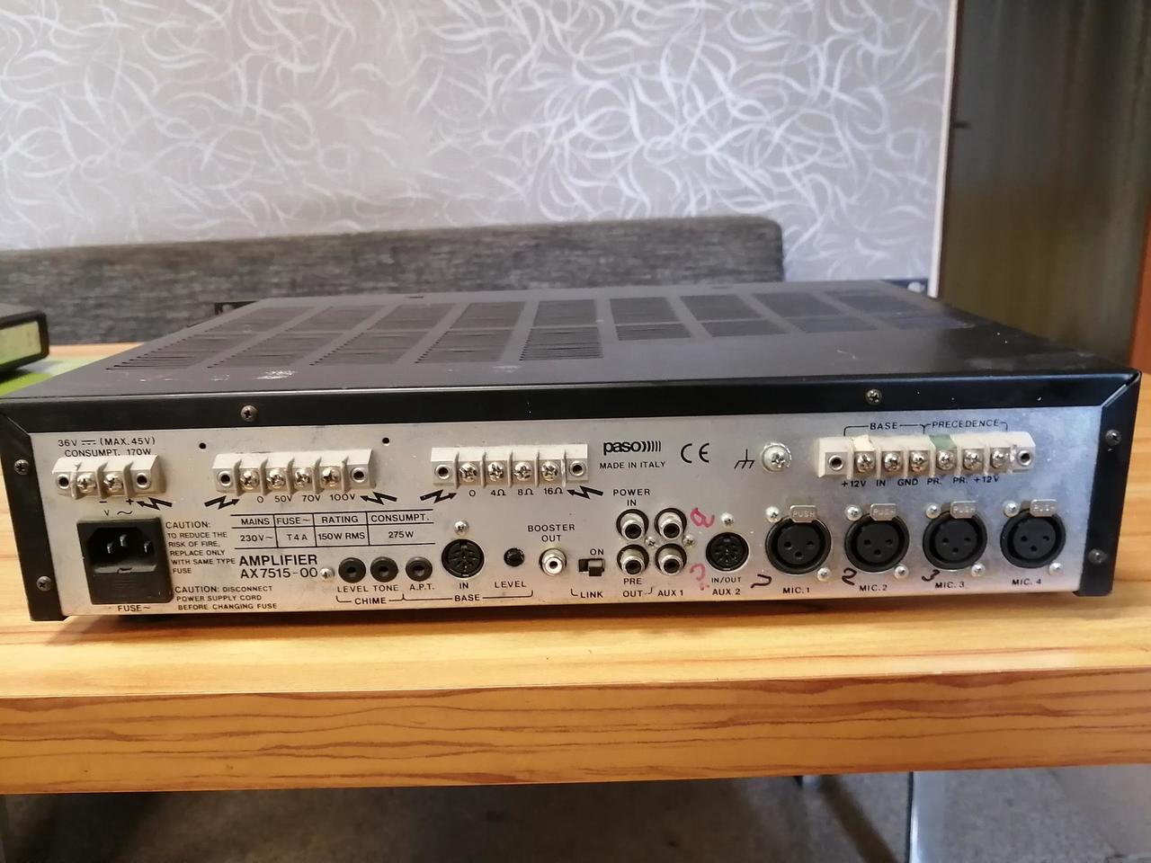 Prodám výkonný a spolehlivý zesilovač PASO Series 7500, určený pro veřejné ozvučení (PA systém) – ideální pro školy, průmyslové prostory, obchody, úřady nebo evakuační systémy. Vhodný pro: hlasové hlášení, hudební podkres, rozhlas do více zón.