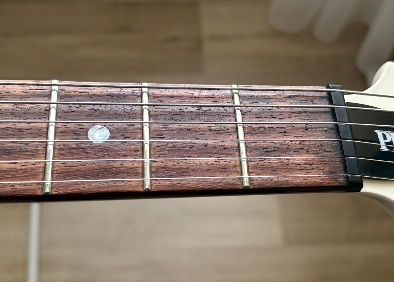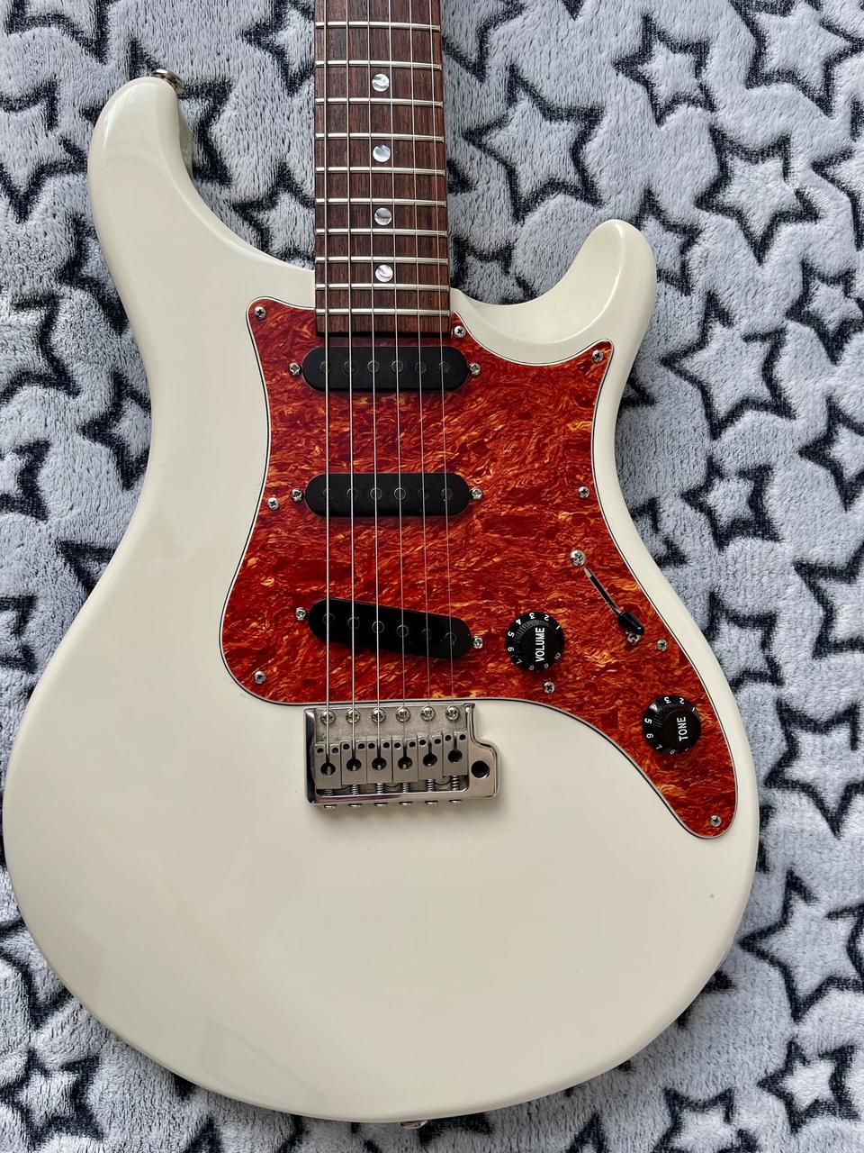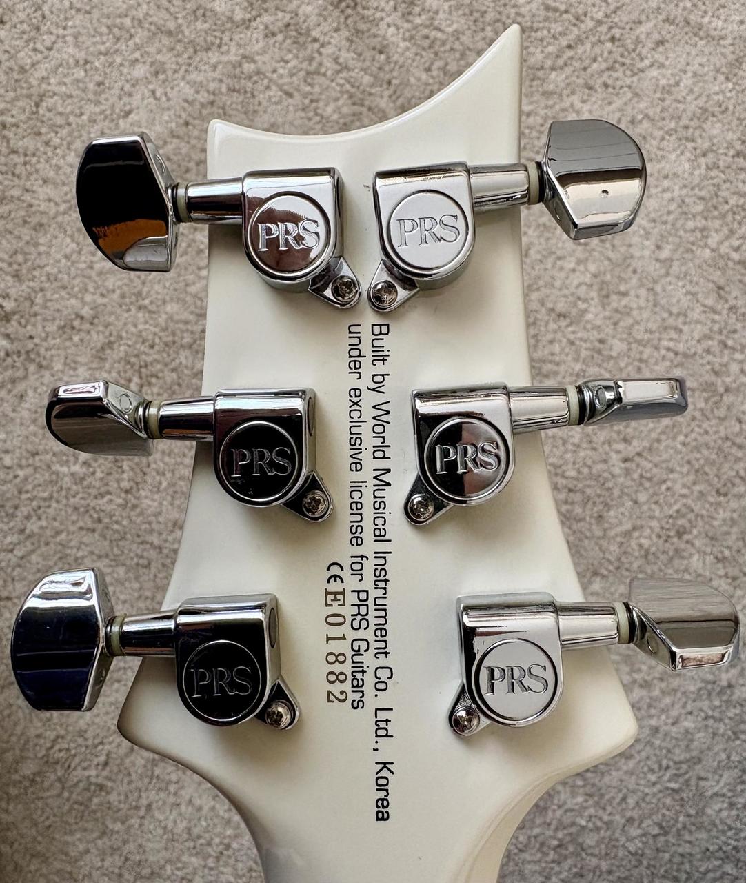 Prodám elektrickou kytaru PRS SE eg (SSS) ve skvělém stavu. Jde o poctivou korejskou produkci z roku 2004, vyráběnou v období 2003 - 2006 pod exkluzivní licencí pro PRS Guitars. Upgrady/Servis: Výměna: nové kvalitní potenciometry (CTS), 5polohový přepínač (Japan), vstupní jackova samice, odstínění, kabely, nultý pražec GraphTech Tusq, seřízený dohmat. Kytara je seřízená na struny 0,10-0,46 (Black Smith), velmi pohodlně hratelná, velmi dobře ladí v celém rozsahu hmatníku. Stav: První majitel. Téměř jako nová, užívaná pouze pro domácí hobby hraní. Jediná viditelná vada na kráse je drobný ťukanec na přední desce, dole u pick gardu, viz foto. Příslušenství: Original PRS SE Gigbag, páka tremola, nová sada strun Black Smith 0,10 - 0,46, a navíc speciální příslušenství, vše v ceně. Důvod prodeje: Přechod na jiný model. Cílová skupina: Kytara pro někoho, kdo chce „Stratocaster“ zvuk, ale preferuje „lespaulovský“ profil kruku a kvalitu zpracování PRS. Cena: Kč 9000 Serial Number: E01882 Year of manufacture: 2004 Country of manufacture: Korea under exclusive license for PRS Guitars Color: Antique White Construction: Solid Body: Mahogany Neck: Mahogany Fingerboard: Rosewood Neck construction: Set-neck Neck profile: Wide fat Nut material: upgraded: Graphtech TUSQ Frets: 22 Scale: 635mm (25“) RADIUS: 254mm (10“) Strings in setup: Black Smith / .010-.046 set Tuners: PRS Fingerboard inlays: Moon inlays Pickups: 3 x PRS single coils Controls: 1 x volume, 1 x tone, 5-way switch Bridge: Tremolo PRS Hardware: Nickel Weight: 3.6kg PRS gig bag included (genuine)