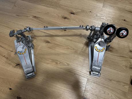 prodám double pedal Pearl Demon Drive ins originálním kufrem. Pedal má pár odřenin uprostřed kardanu podlážky jsou trochu zoxidované. Poměrně výrazně kosmetické vady, ale nemají na chod pedálu vliv. Žádné vůle o ložiska bylo dobre staráno. Beatery jsou originál a jen minimálně hrané. Preferuji osobní předání v Praze. Cena dohodou.
