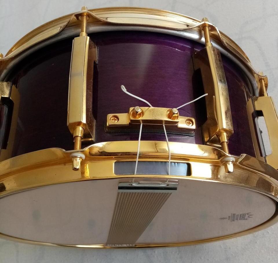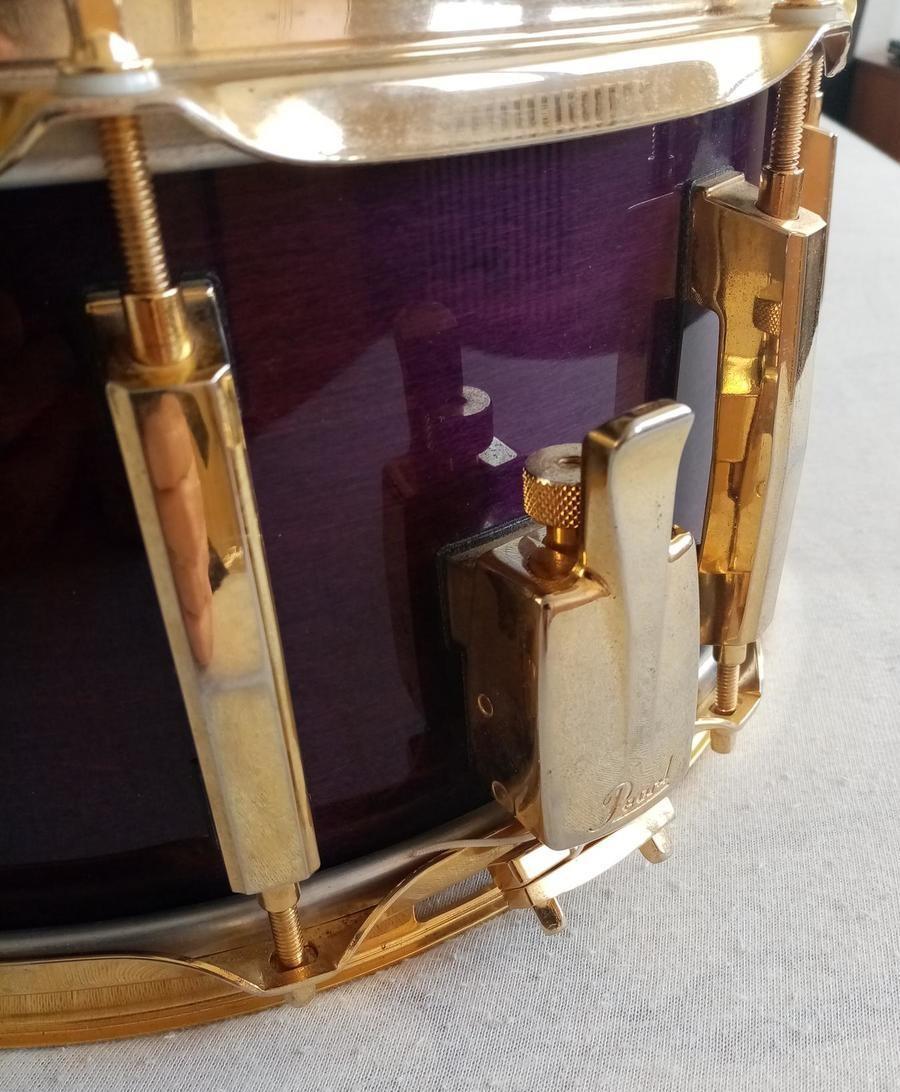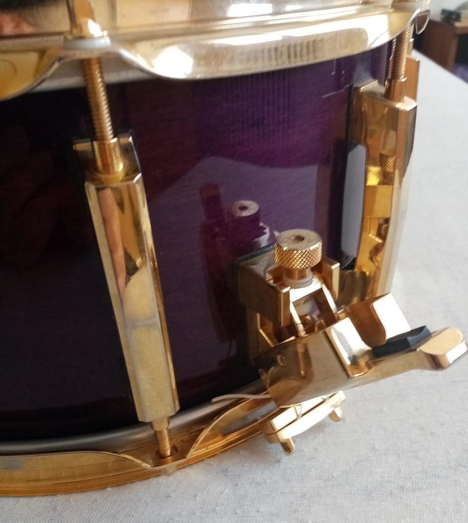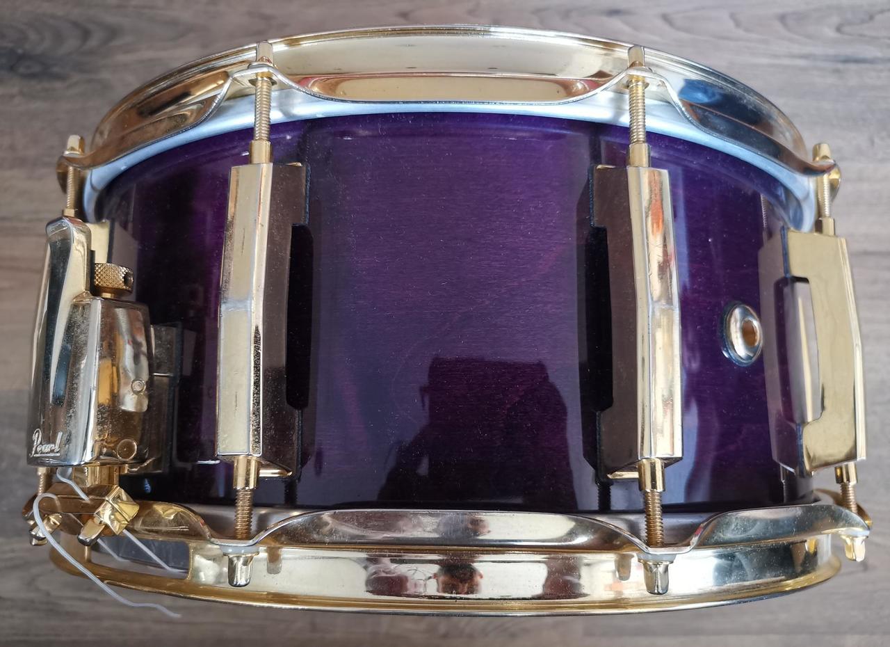 Prodám malý buben Pearl Masters Custom 14x6,5" v povrchové úpravě Purple Mist. Buben je v pěkném stavu, vše funguje, jak má.