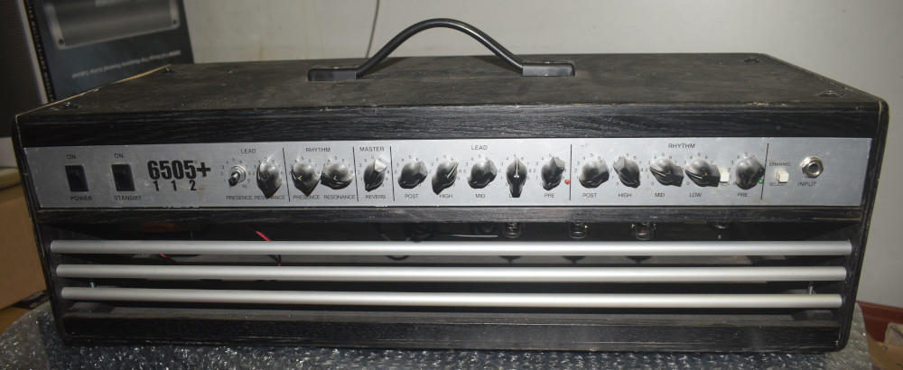 Prodám zesilovač Peavey 6505+ 112. Lampový, 60 W. V tuhle chvíli je zesilovač z komba předělaný na samostatnou hlavu (váha cca 9 kg). Původní šasi a repro samozřejmě přidám, tudíž lze uvést do továrního nastavení. Má něco za sebou, opravovaný preamp (P. Fremr), nefunkční reverb, nicméně jinak v pořádku. Nové lampy v preampu, výkonové starší JJ, původní Ruby přidám. Pouze osobní odběr, možnost vyzkoušení.