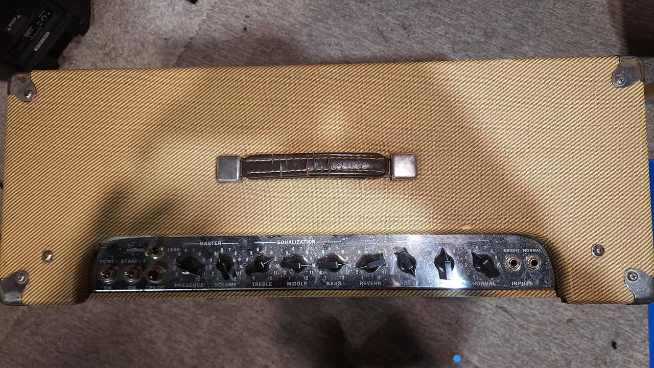 Elektronky: 3x 12AX7 (preamp) + 4x EL84 (koncový stupeň) • Reproduktory: 2x 12“ 8Ohm, Blue Marvel si nejsem jistej • Počet kanálů: 2 (Normal / Lead) • Ekvalizér: pasivní 3-pásmový, společný pro oba kanály + aktivní Presence • Efektová smyčka • Reverb • Ventilátor • Footswitch: přepínání kanálů, aktivace reverbu Lampy v dobrém stavu