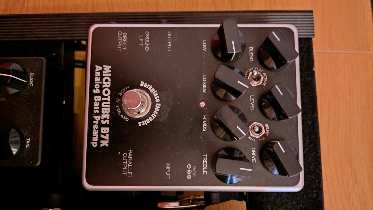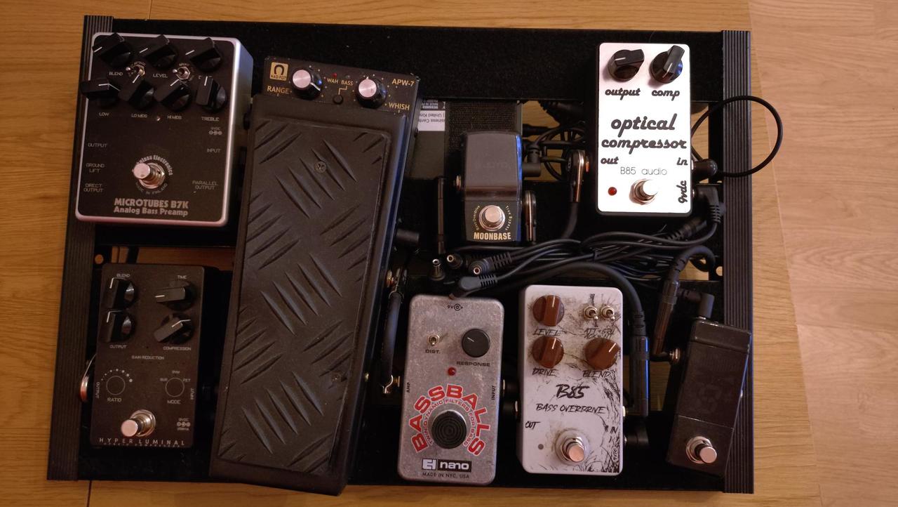 Darkgless microtubes b7k v2 - 4000,- darkglass hyperluminal - nefunkční jedna led u mode bus - 3500,- PRODÁNO B85 bass overdrive - klon b3k - 1200,- B85 optical compressor - 1000,- PRODÁNO EHX bassballs - 800,- joyo moonbase - 500,- Artec APW-7 Wah - 1200,- PRODÁNO korg pitchblack mini - 1400,- dohromady včetně zdroje Palmer PWT 05 MK2 a pedalboardu spaceship 40 s obalem za 13 000,- dohoda možná