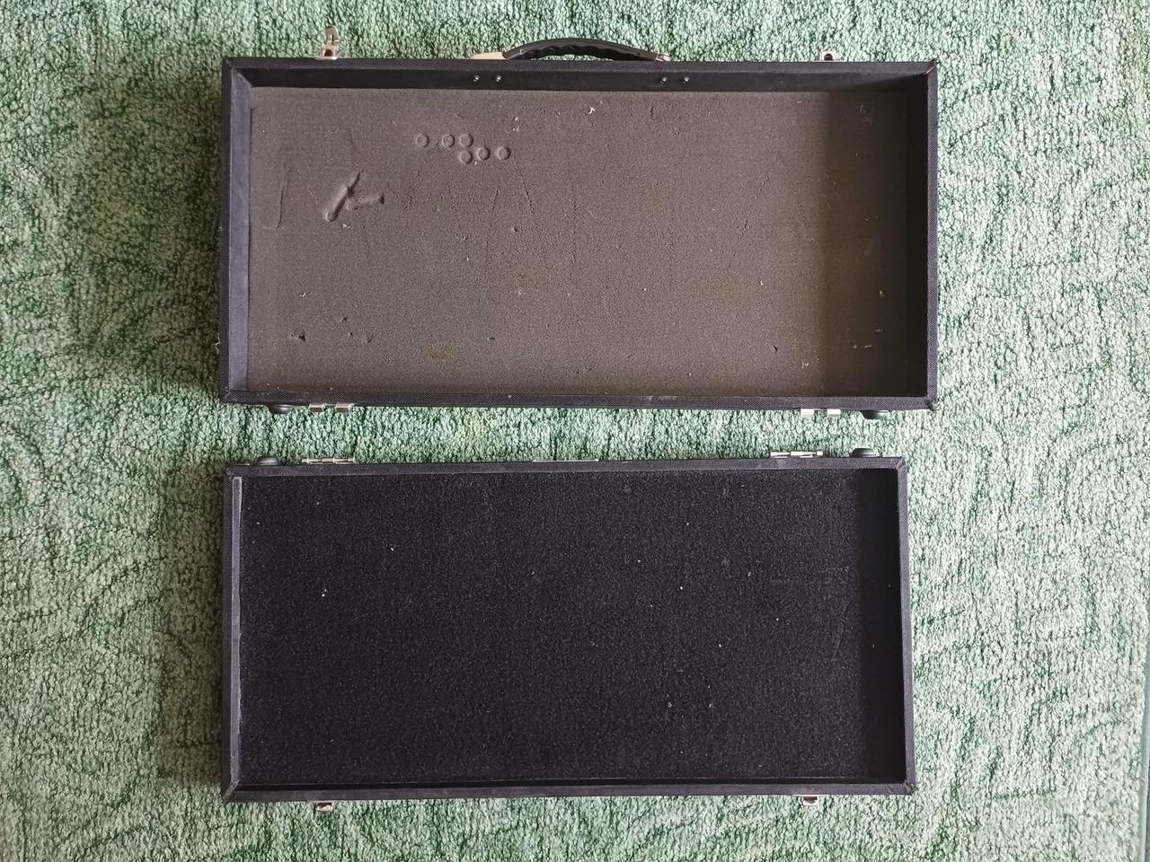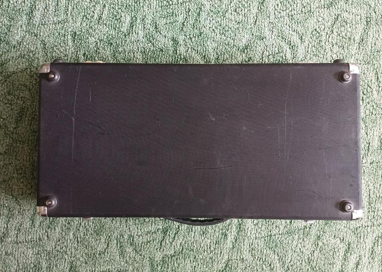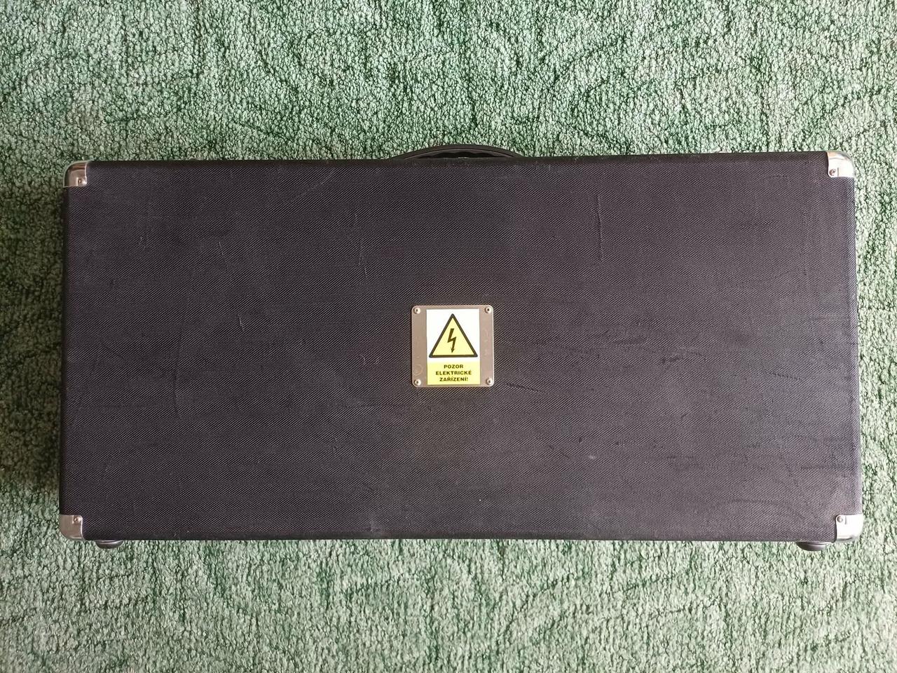 Vnitřní rozměry 75 x 35 x 10 cm, zachovalý stav. Na madle byla nahrazena jedna strana šroubkem - funkčně v pohodě. Jinak je to poctivý bytelný pedalboard, co mi sloužil do doby, kdy do něho ještě bylo co dát. Pokud by chtěl někdo sundat onu varovnou nálepku, tak samozřejmě můžu :)