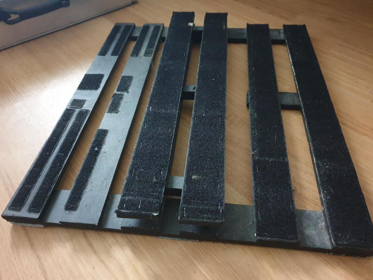 Rozměry 45,5 x 52,5 cm. Pedalboard má zvýšené patro o 4cm. Má něco za sebou, ale určitě poslouží. Pro ilustraci přikládám foto ještě osazeného bordu.