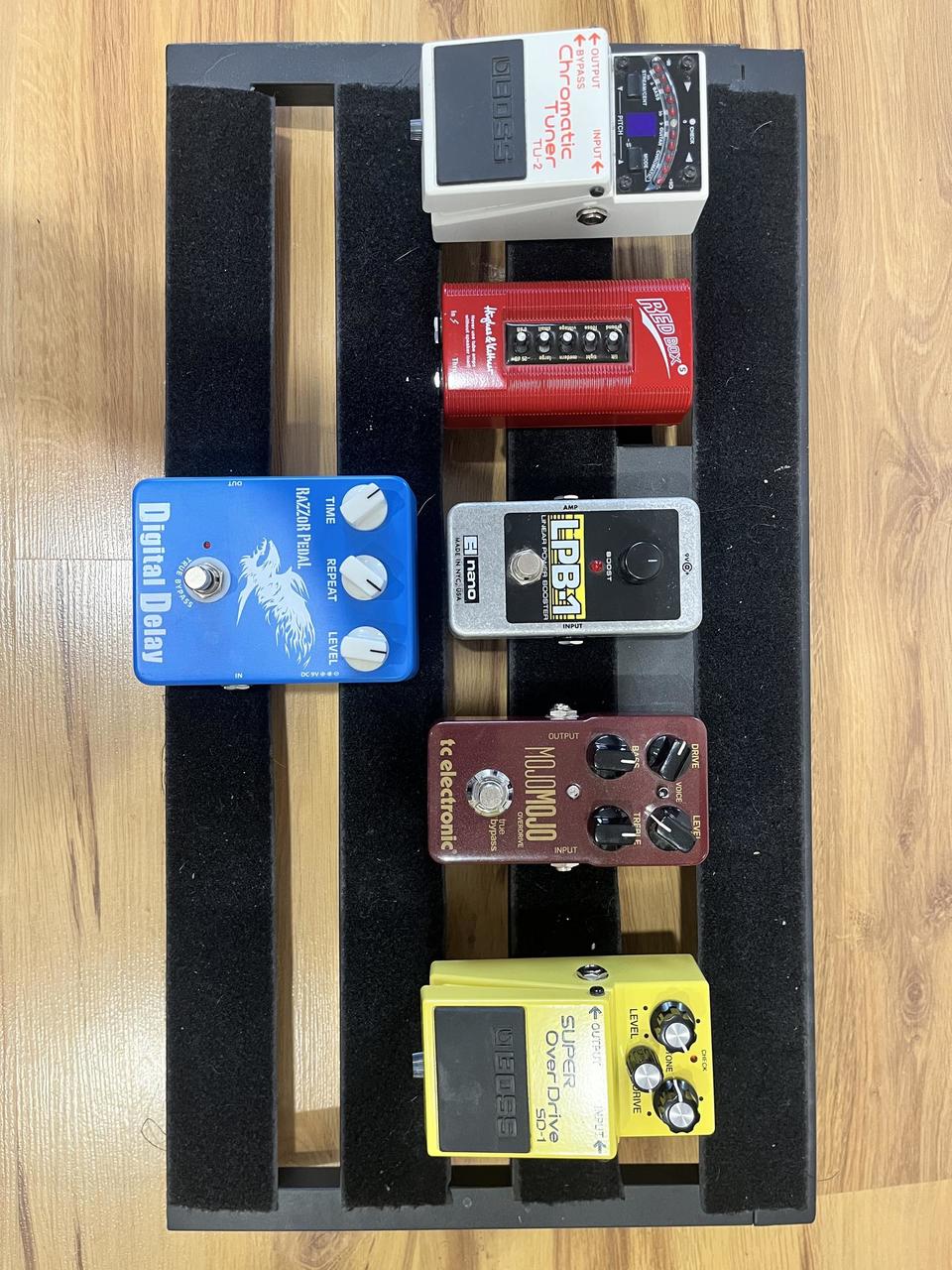 Byly párkrát venku, jinak většinu času ve zkušebně. Plně funkční. Elektro Harmonix LPB 1 Booster - 850 kč TC electronic MOJO MOJO overdrive - 1000 Kč Boss SD-1 overdrive - 1500 Kč Boss TU-2 ladička - 1500 Kč RaZZor Pedal Digital Delay - chybí krytka baterie - 500 Kč Hudges Kettner REDBOX5 Di-Box - 1000 kč Pedal Board Joyo - 1000 Kč Pro více info e-mail.