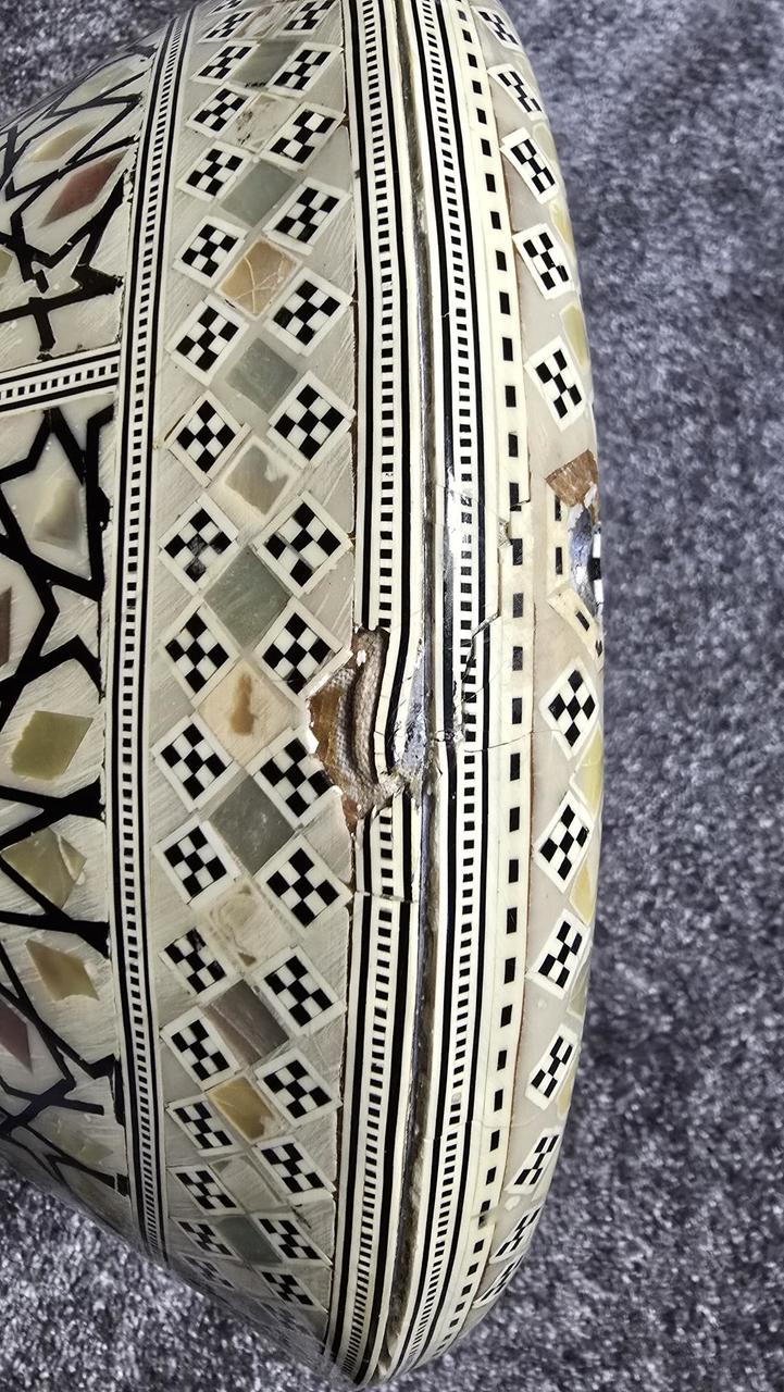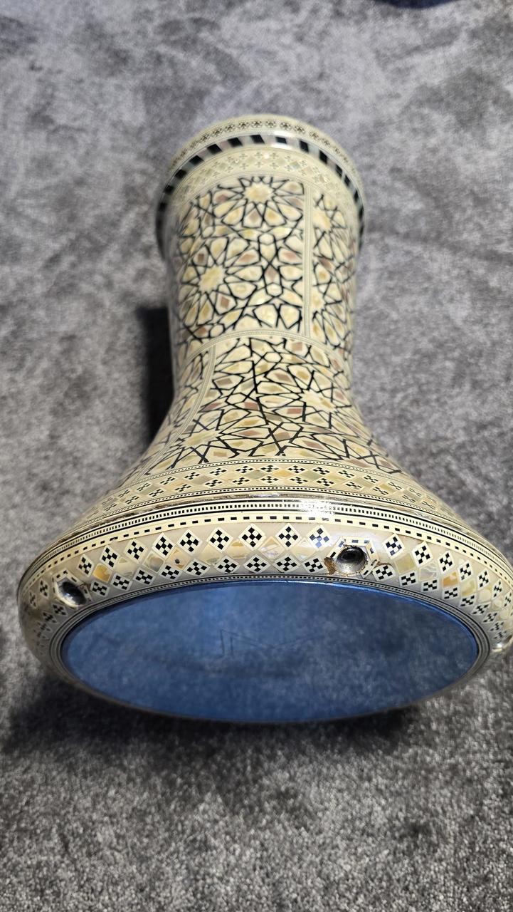 Prodám egyptskou darbuku, vykládanou perletí. Včetně náhradní blány. V jednom místě povrchová úpra...