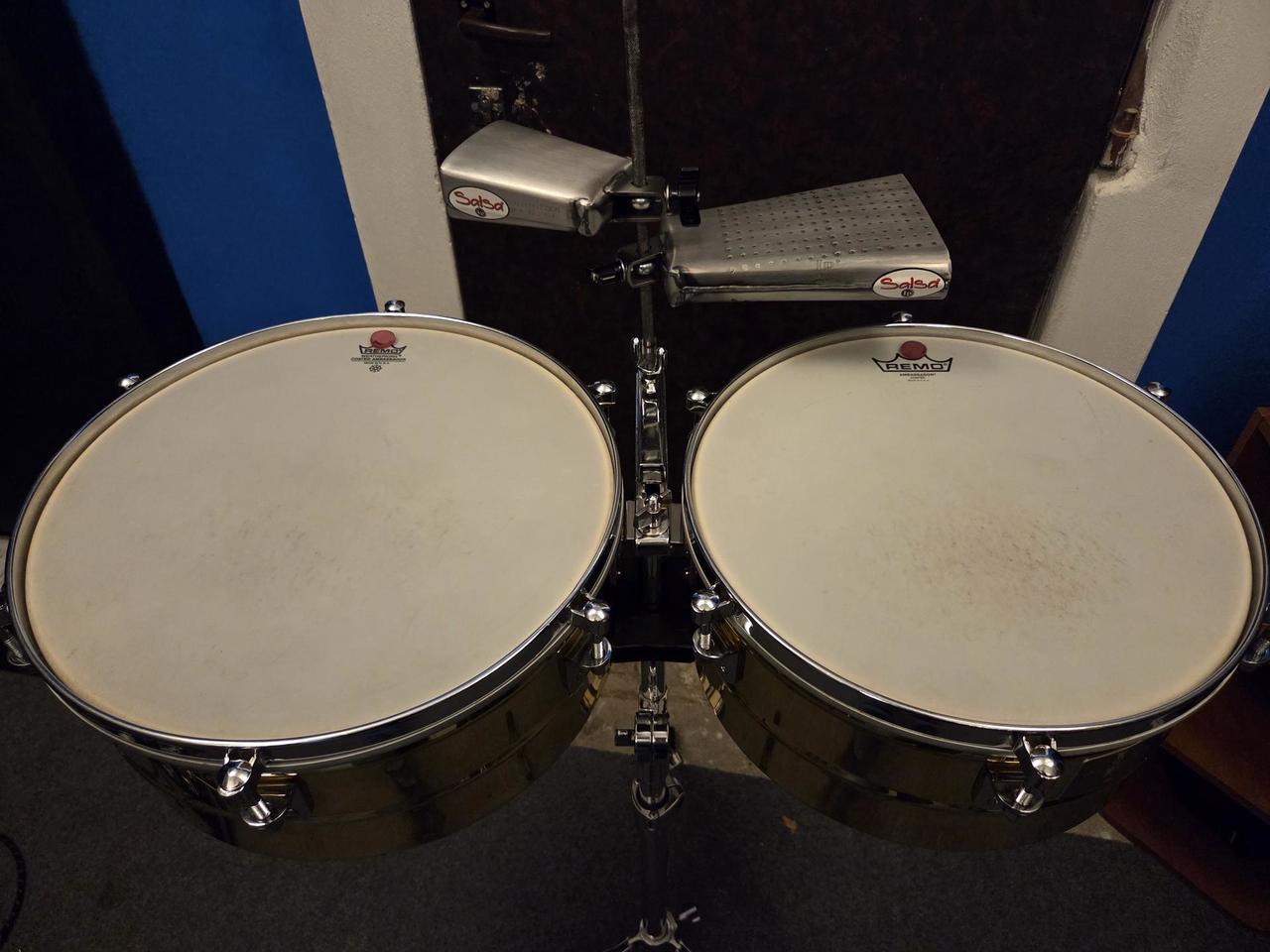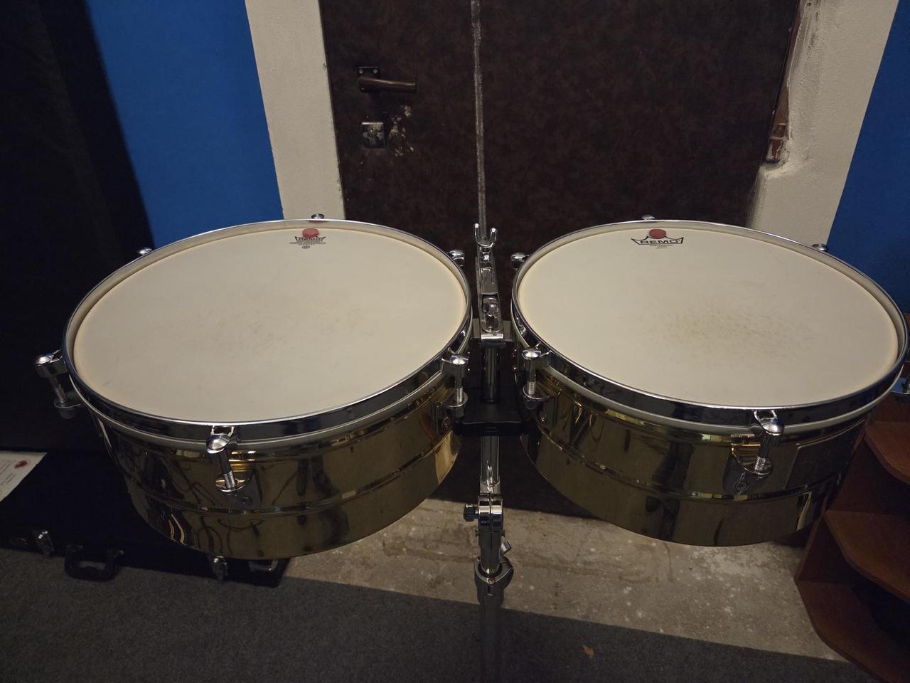 Predam Tycoon Timbales 14" a 15". Necham k tomu starsi stojan, na ktorom drzia. Blany Remo Ambassado...