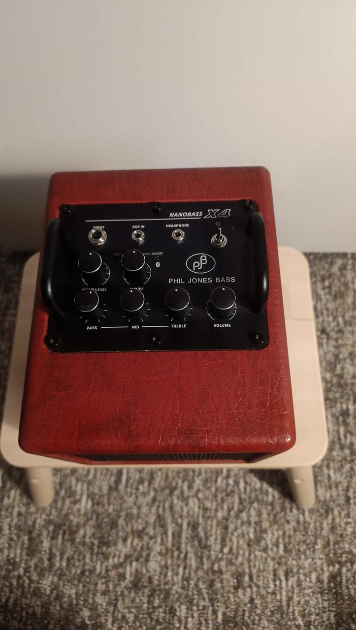 Prodám doma hrané malé kombo pro basovou kytaru Phil Jones Bass X4 Nanobass, 35 W zesilovač se 4" reproduktorem a 3-pásmovým ekvalizérem. Umí linkový vstup a Bluetooth.