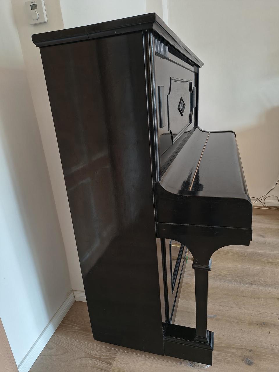 Stav: udržované, laděné, mechanika po kontrole. Povrchová úprava: černý lesk, klávesy obloženy pravou slonovinou (ivory), což poskytuje velmi příjemný pocit při hře a dobrou absorpci vlhkosti. Na horní desce drobné oděrky (viz foto). Vybavení: 2 pedály, moderátor pro tiché hraní Lokalita: Dobřichovice, okr. Praha - západ. Pianino se nachází v přízemí rodinného domu. Prohlídka a vyzkoušení možné po domluvě.