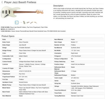 Prodám do dobrých rukou bezpražcovou basu Player Jazz Bass Fretless z Mexika. Hraná minimálně, stav jako nová, prodávám z důvodu nevyužití a přijde mi škoda, aby se na ni nehrálo. Všechny parametry viz foto.