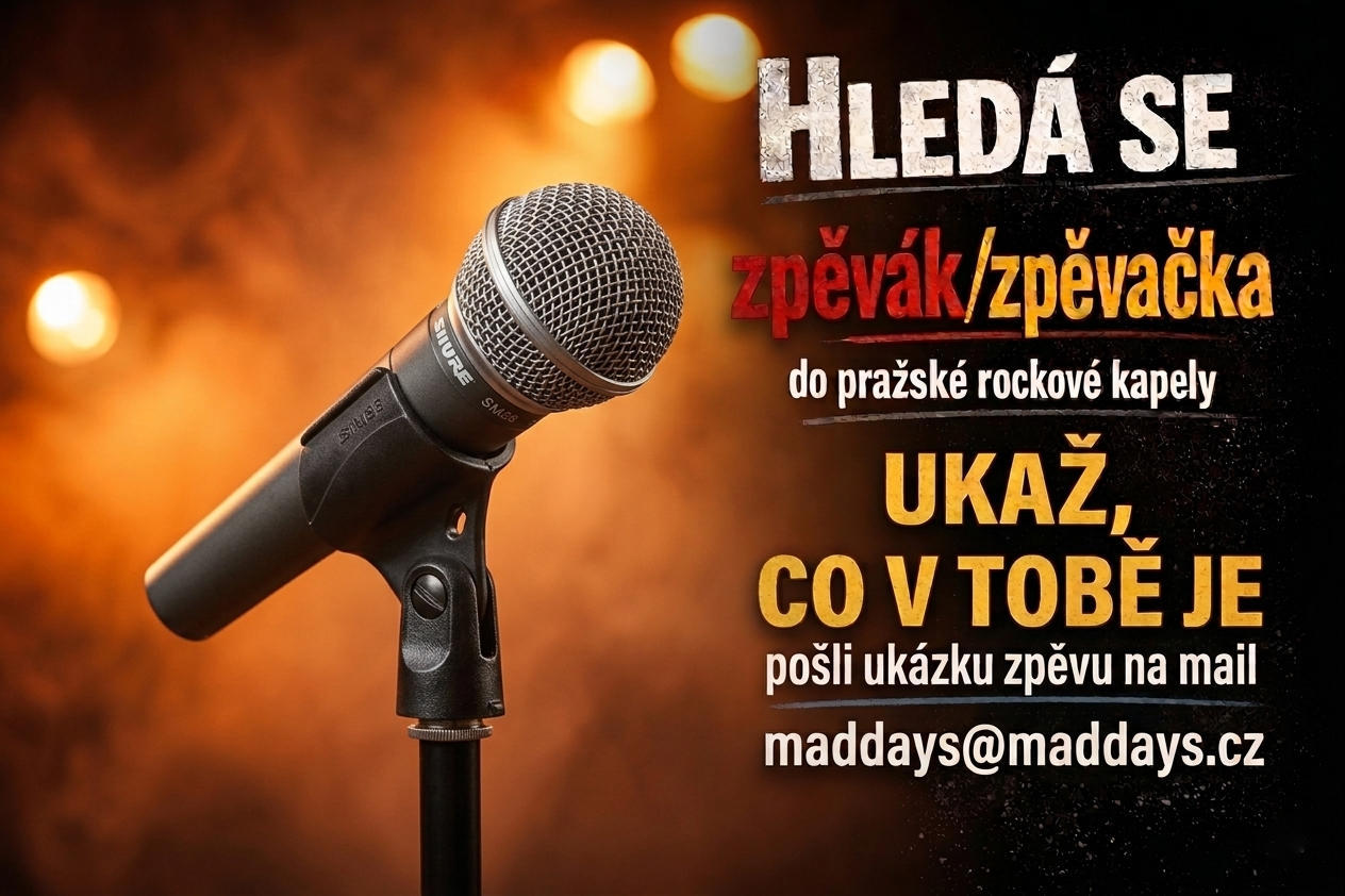 Vlastní zkušebna ready, aparáty připravené. Přijď a rozbal to. Ozvi se na mail a klidně přidej i ukázku zpěvu, ať víme, co nás čeká. mail: maddays@maddays.cz Vloženo 8.4.2026 15:56 pod č.752926