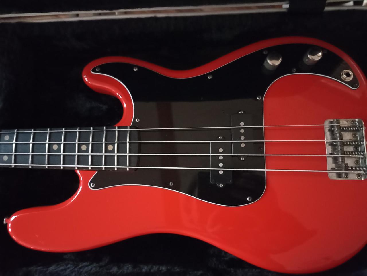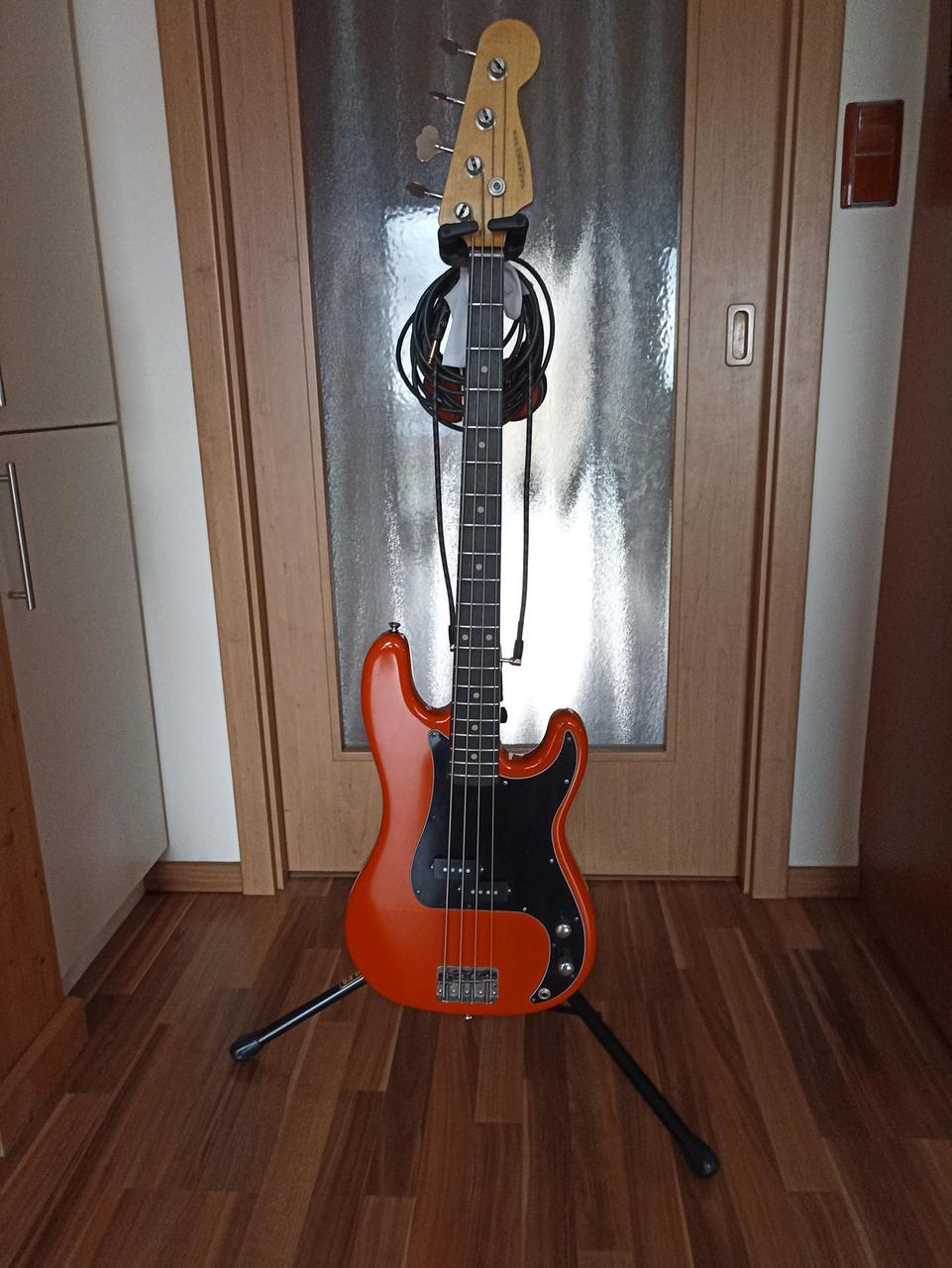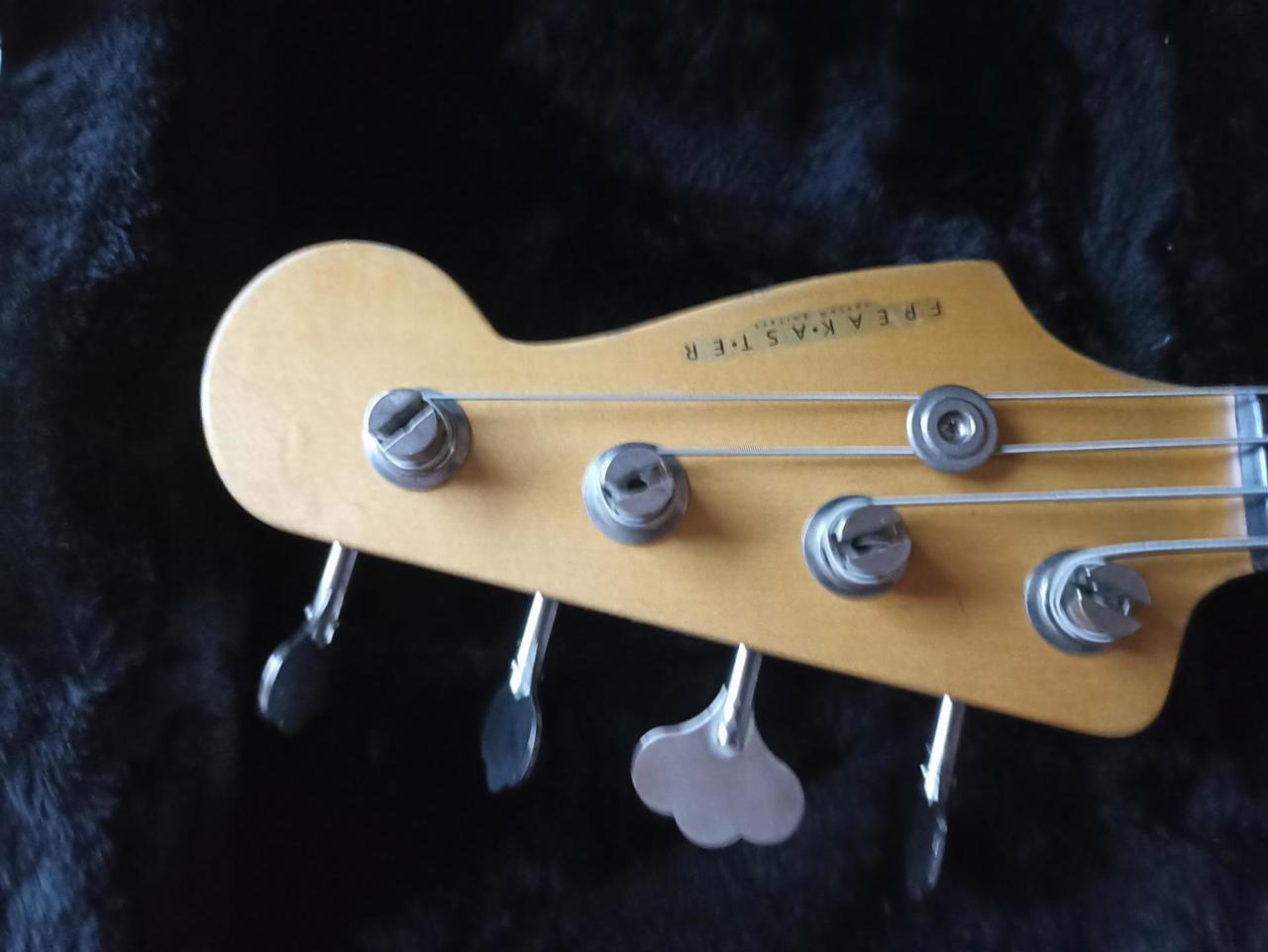 Freakaster je polský custum shop výrobce kopií/replik starých nástrojů. Jedná se o kopii nástroje Fender Precision Bass ve stylu šedesátých let. Tělo olše, krk javor v řezu quarter sawn a skvělý hmatník z tmavého palisandru. Krk je netradičně JB 38,1 mm profil U. Mechaniky lehké Gotoh GB 640. Snímač Hathor je ručně vinutý. Původní korpus byl " odlehčený" a to tak prasácky, že jsem ho vyměnil za nový, také olšový. Zvuk je skvělý! Poctivý, zvonivý, průrazný Precision. Basa je seřízená, byla provedena výměna potenciometrů a samice, nové struny Ernie Ball 45, 65, 85, 105. K nástroji nový kufr. Samozřejmě dodám i původní korpus. Teď už jen spíš na opečení buřtů. Cena je pevná, s prodejem nespěchám. Ze zdravotního důvodu prodávám obě své long scale baskytary a přecházím na medium scale.