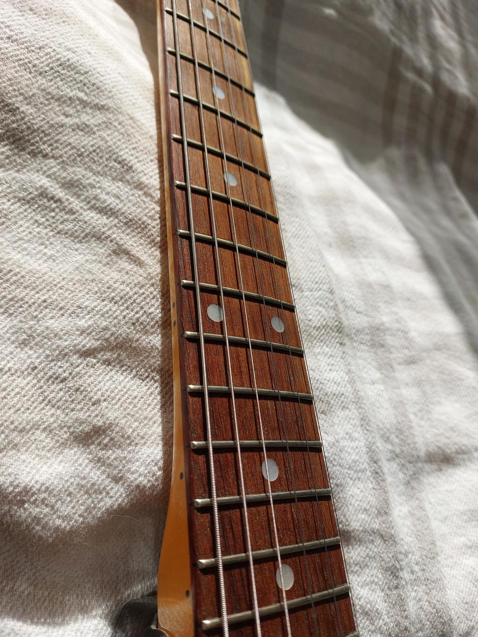 - servisovana p. Neuszerom, nedavno vymenene a vylestene prazce u dr. Alexa - shim na krku - dodatcne vyrobeny pickguard (povodny prilozeny) - nove naprstky na kobylke (bridge thimbles) od Halon - Curtis Novak JAG-V pickups (moznost kupit aj bez nich) - vymena realizovana Igorom Kellerom - series/parallel mod - uprava sa da par preletovaniami jednoduch vratit do povodneho stavu - umoznujuci popri povodnom stave zapnut snimace spolu ako "vzdialeny humbucker" - cela gitara vytienena a elektronika skontrolovana p. Kovacom - pridam novy nepouzity gitarovy pas Cena 1600e pripadne 1350e bez snimacov Osobne MA/BA Nivy Kontakt/otazky prosim len cez formular Dakujem!