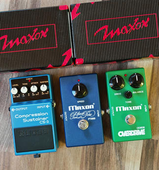 Maxon OD-808 overdrive + krabička - Predané Maxon PT-999 phaser + krabička - 100€ Boss CS-3 Compression Sustainer - 75€