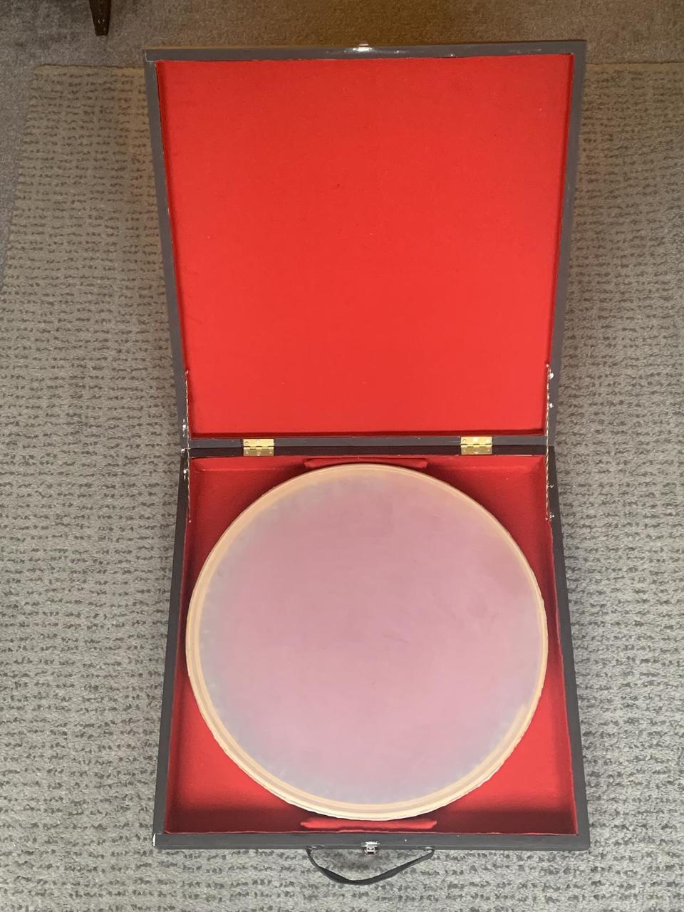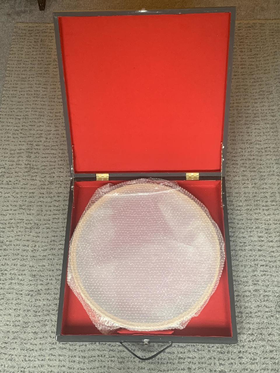 Ponúkam na predaj ručne vyrobený daf od gréckeho výrobcu. Som jeho prvý majiteľ a kvôli nedostatku času som naňho takmer vôbec nehral, preto je nástroj vo výbornom stave a pripravený na ďalšie hranie. Jeho priemer je 55 centimetrov a váži približne 1025 gramov. Súčasťou nástroja sú kovové krúžky upevnené na drevenej doske, ktorú možno vybrať a hrať aj bez nich.