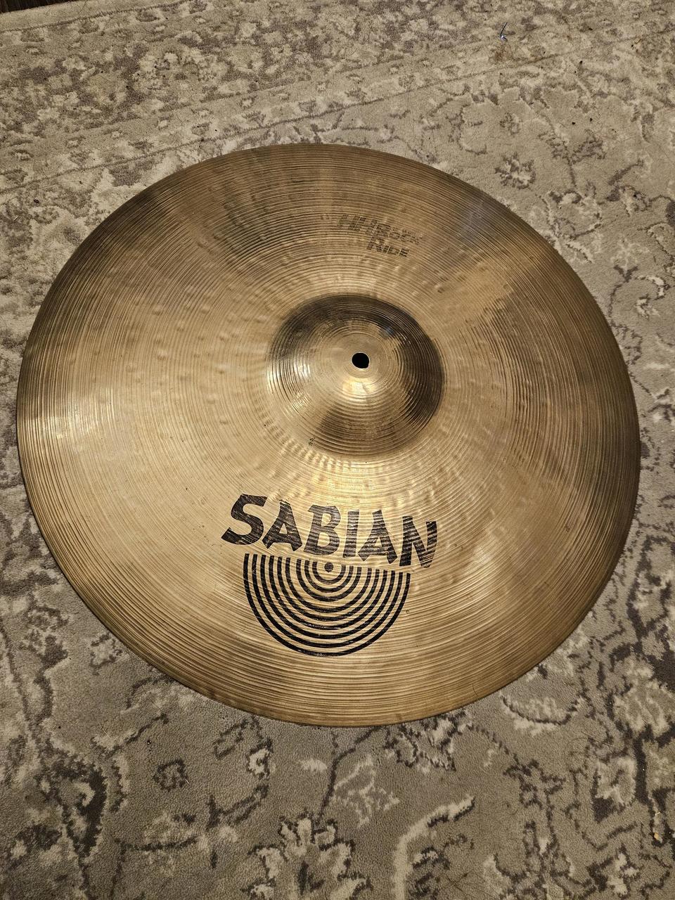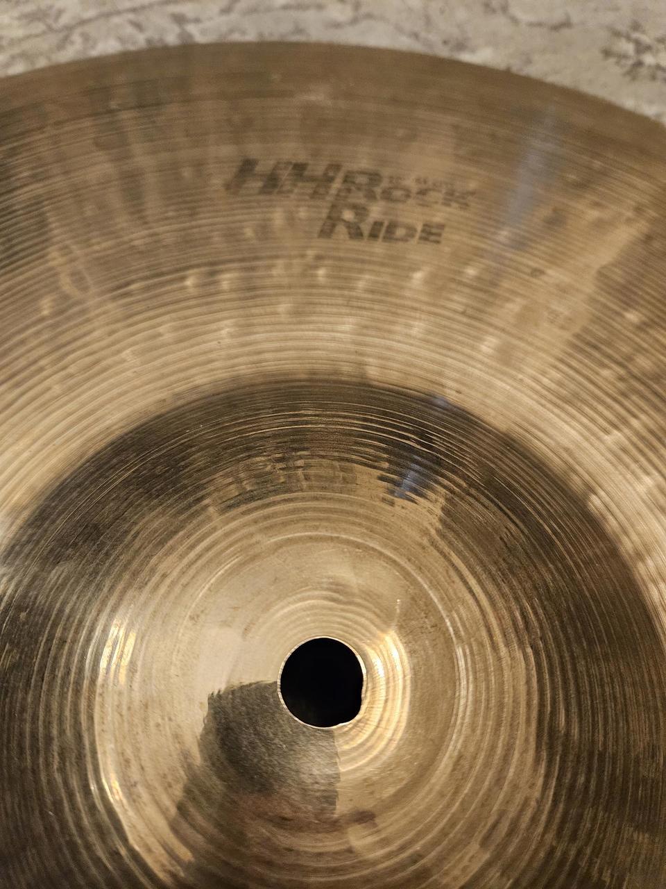 Sabian Hand Hammered 20" Rock Ride. Starý, ale dobre znejúci ride činel. Má troška keyhole, vidno na foto.